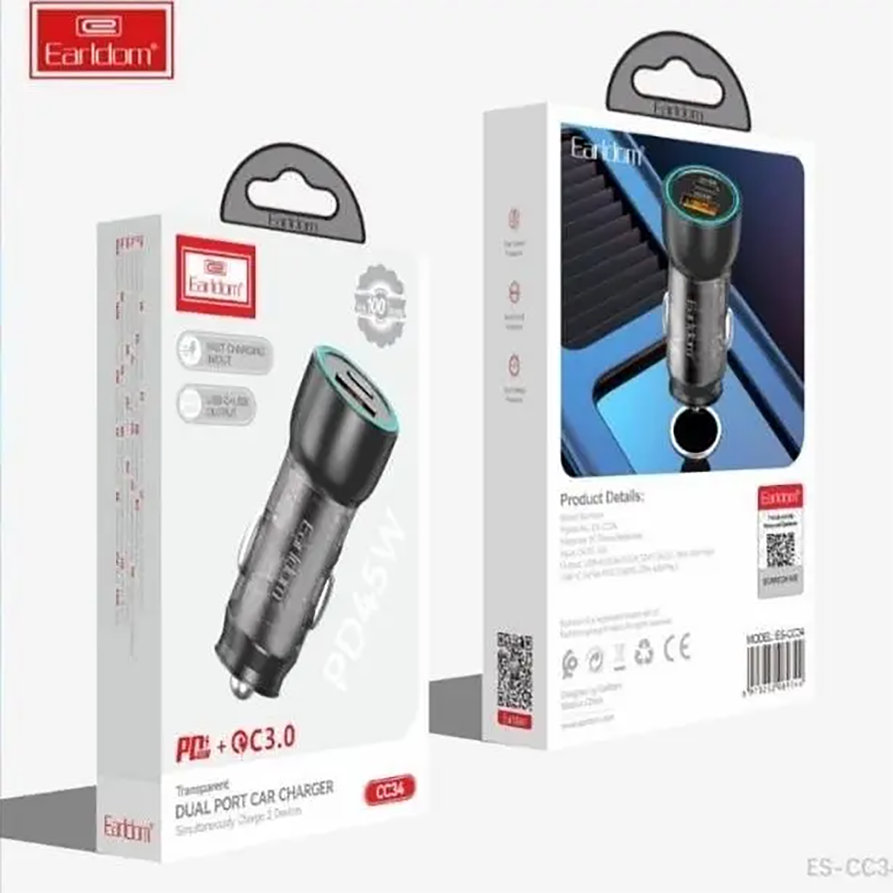 شارژر فندکی فست شارژ ماشین 25 وات 3 آمپر دو پورت ارلدام EARLDOM CC34