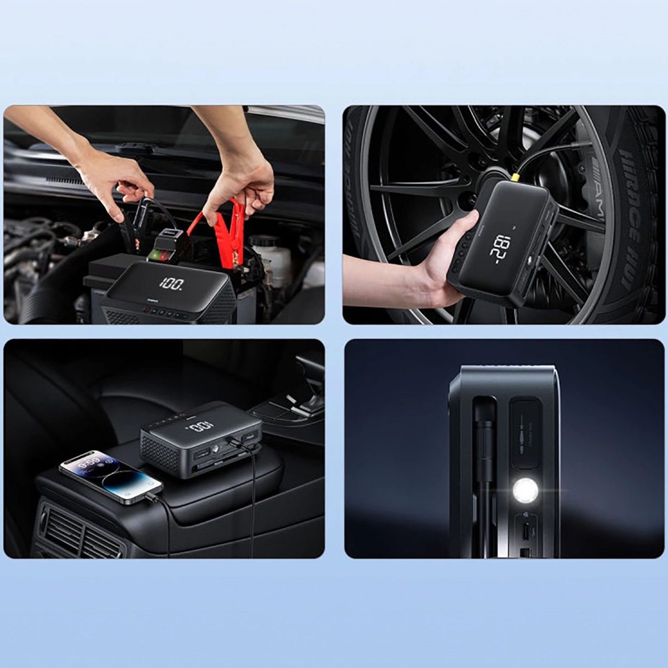 | امکانات و قابلیتها | جامپ استارتر 600 آمپر، کمپرسور 150 PSI، پاوربانک، چراغ قوه با حالتهای ثابت/SOS/استروب، 12 حفاظت ایمنی، نمایشگر دیجیتال، محفظه نگهداری لوازم |