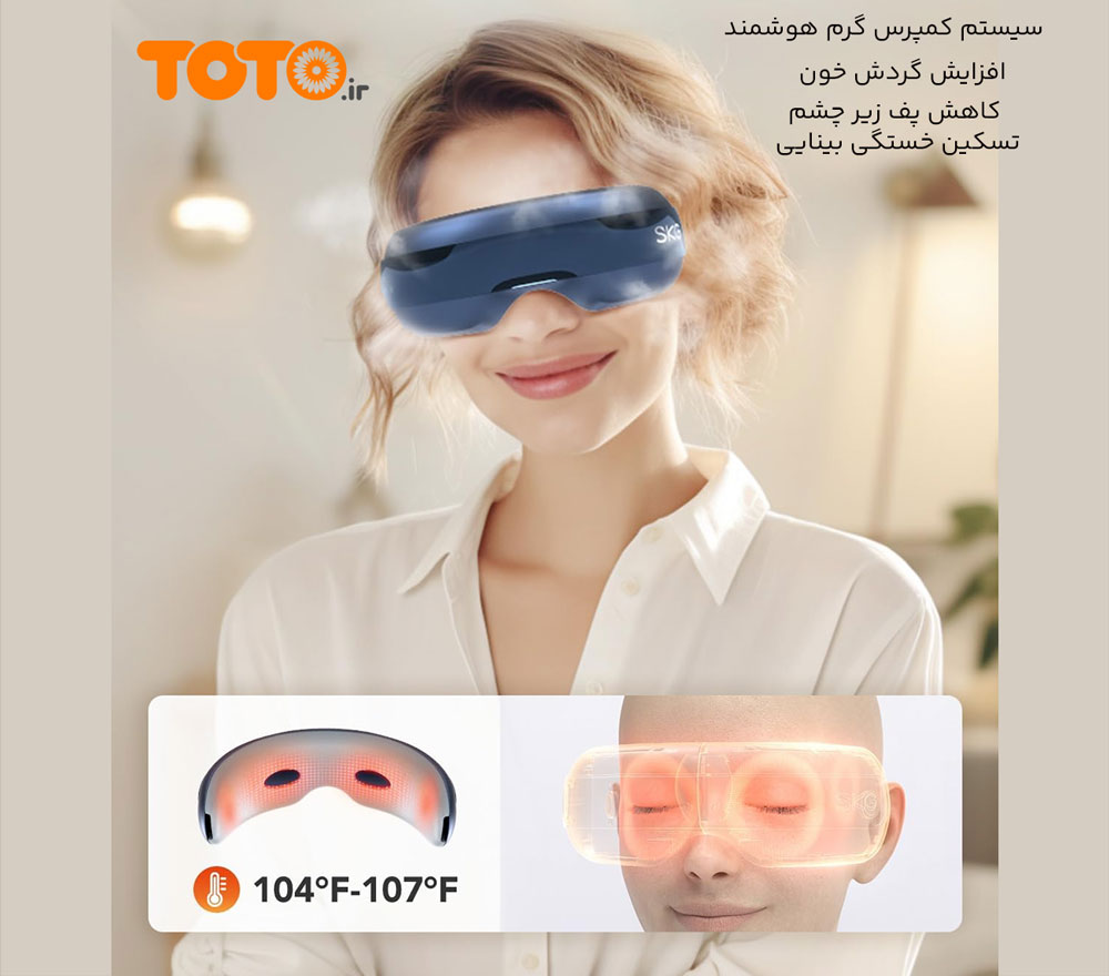 ماساژور چشم حرفهای برند SKG مدل E3 Pro با استفاده از سیستم کمپرس گرم هوشمند، گرمایی در محدودهی 40 تا 41 درجه سانتیگراد ایجاد میکند؛ دمایی کاملاً ایمن و مؤثر برای افزایش گردش خون اطراف چشمها، کاهش پف زیر چشم و تسکین خستگی بینایی.