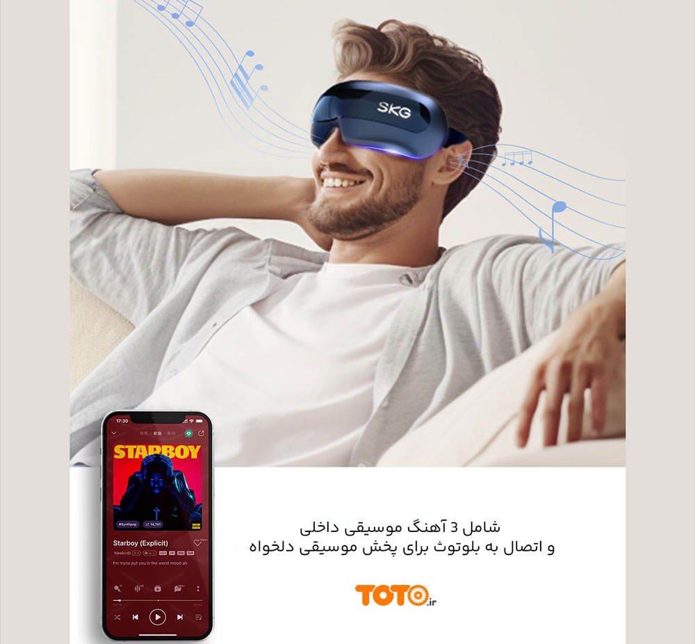 برای افزایش حس آرامش ذهنی، دستگاه ماساژ چشم اس کا جی از بلوتوث داخلی و سه آهنگ پیشفرض آرامشبخش پشتیبانی میکند.