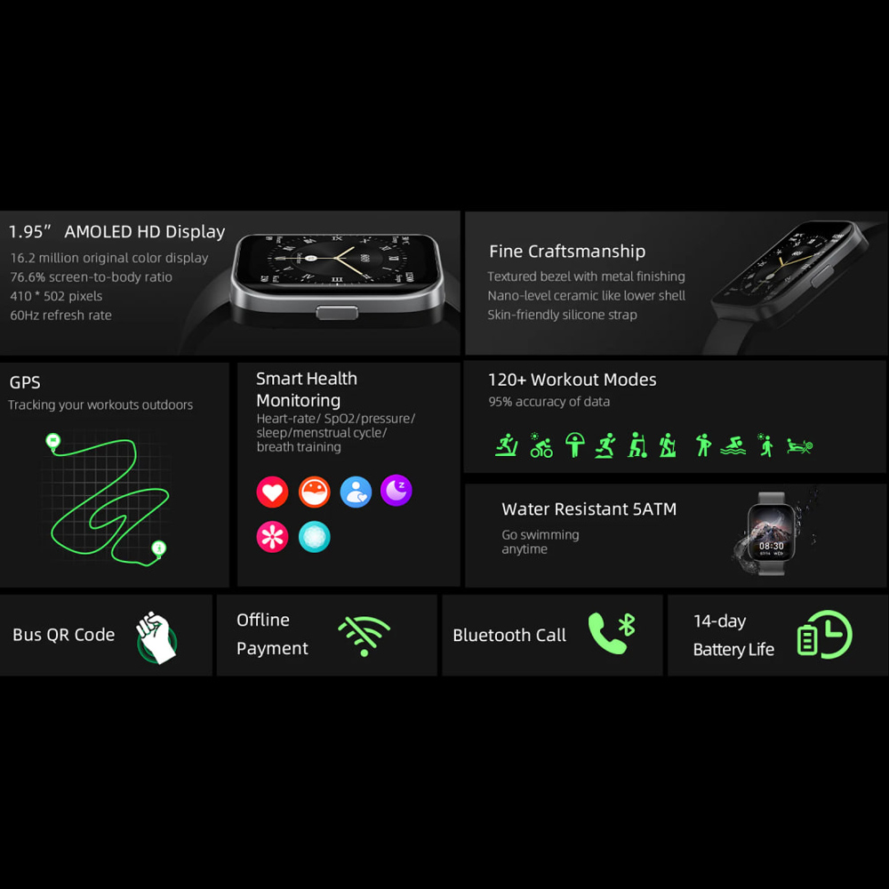 QCY Urban GS Smartwatch with Amoled, GPS & NFC
