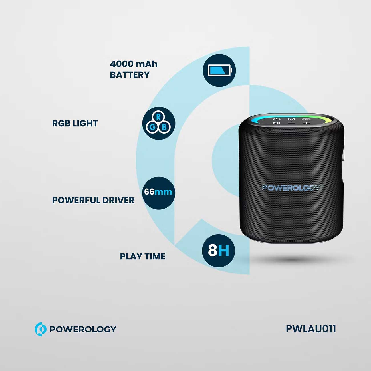 اسپیکر بلوتوثی شارژی قابل حمل 25 وات پاورولوژی Powerology PWLAU011 با نور RGB