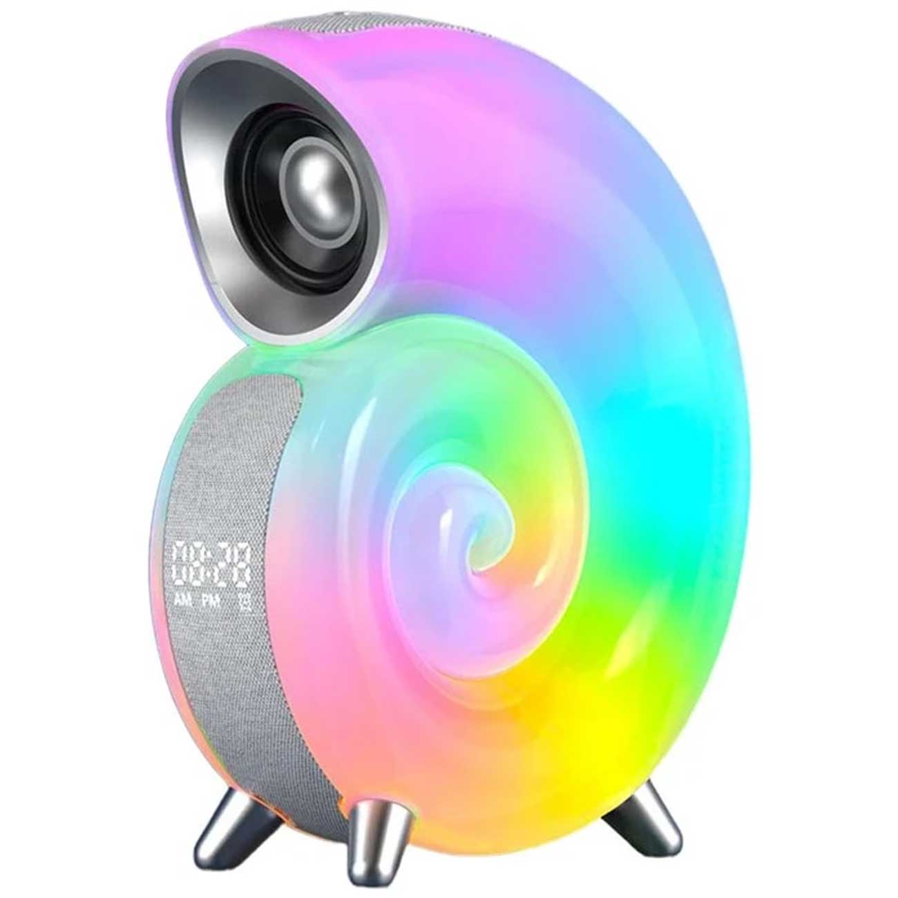 اسپیکر بلوتوثی شارژی حلزونی RGB دار - چراغخواب و ساعت زنگدار
