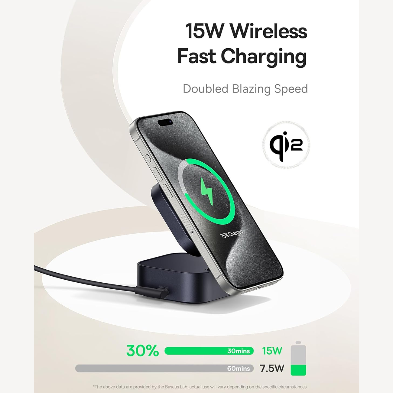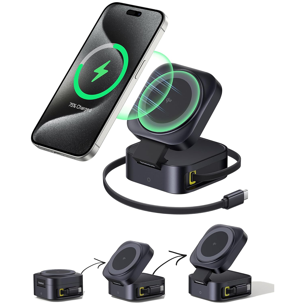 شارژر وایرلس 15 وات و هولدر موبایل مگنتی رومیزی بیسوس Baseus PicoGo BSW-540 با کابل تایپ سی جمع شونده 67 وات