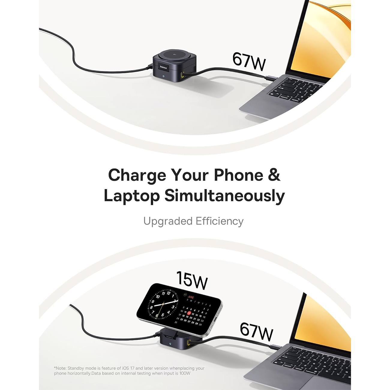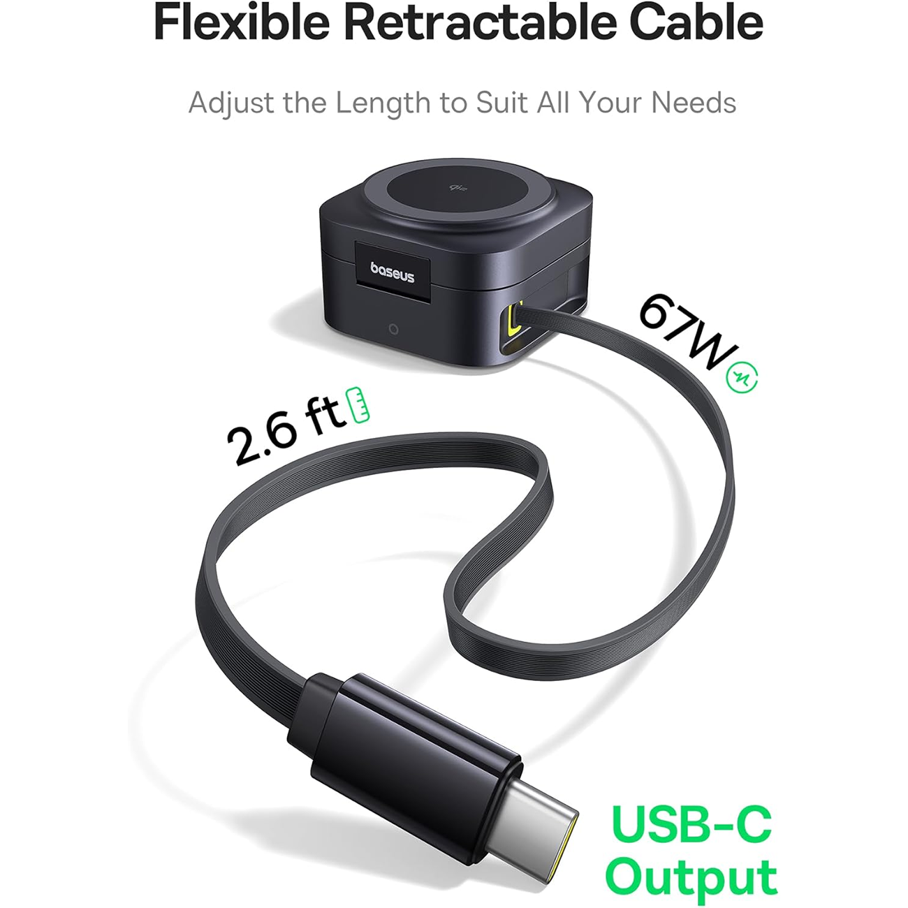Baseus PicoGo BSW-540 Wireless Charger, Qi2 67W Retractable Cable, 2-in-1 Wireless Charging Station