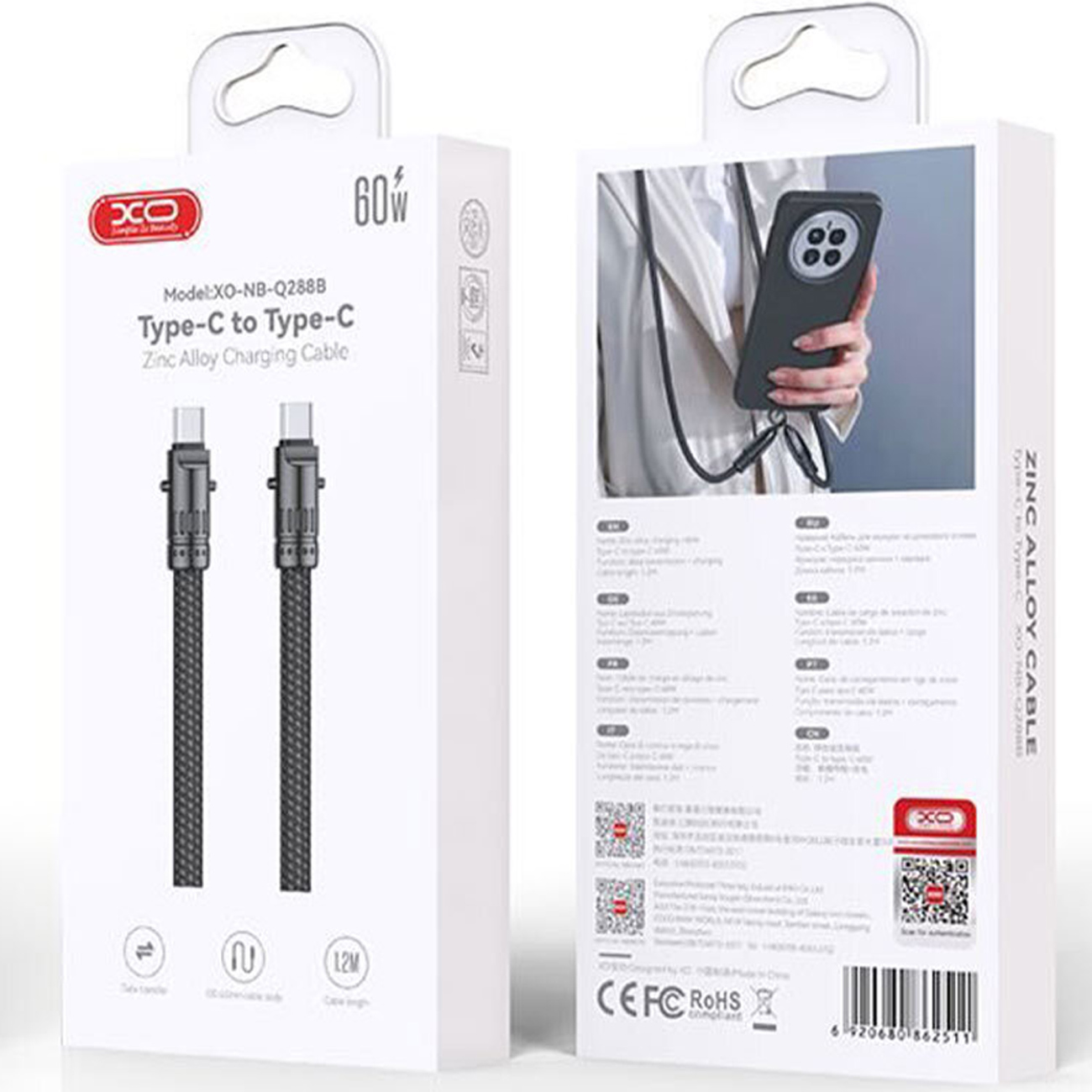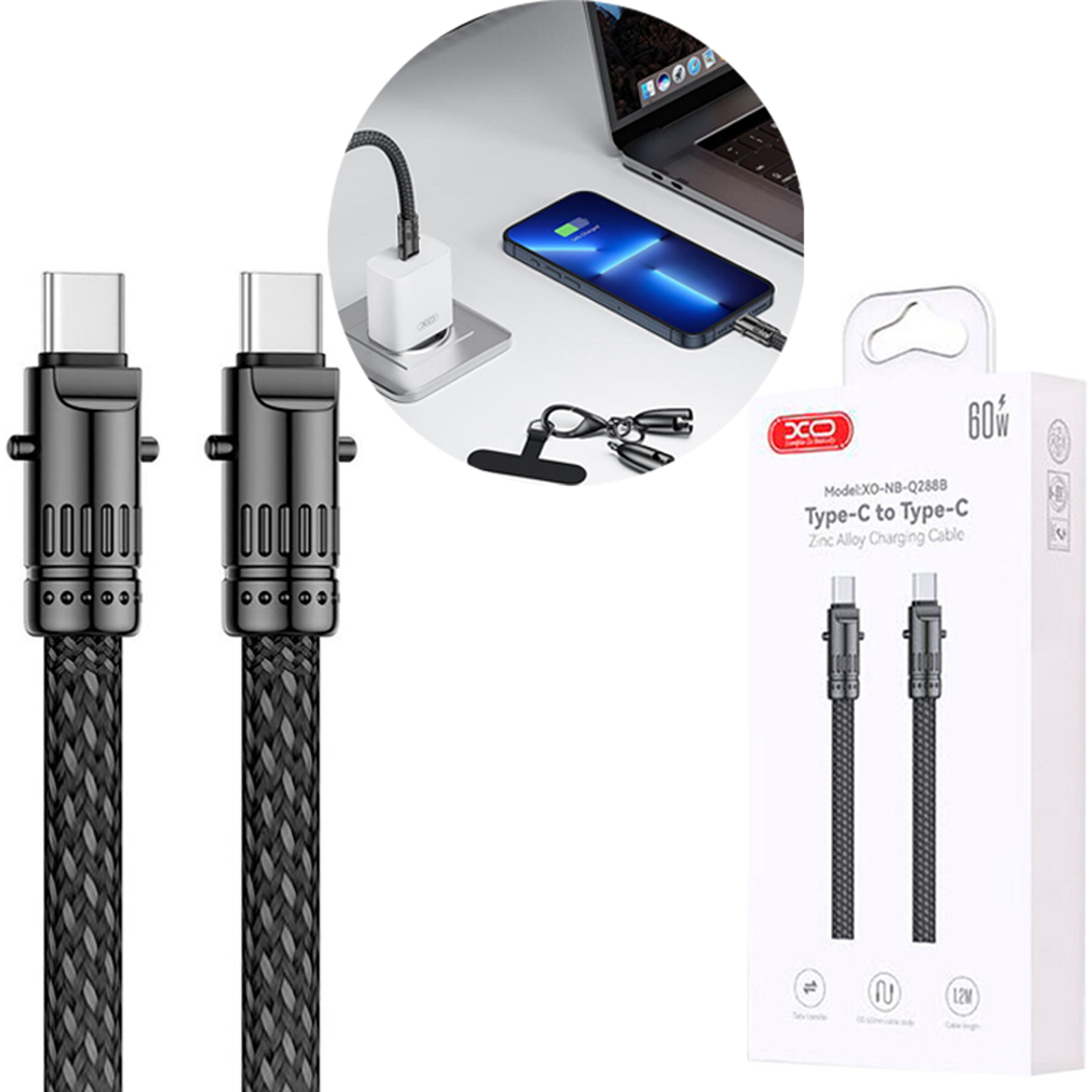XO Cable Zinc Alloy Type-C to Type-C 60W NB-Q288B