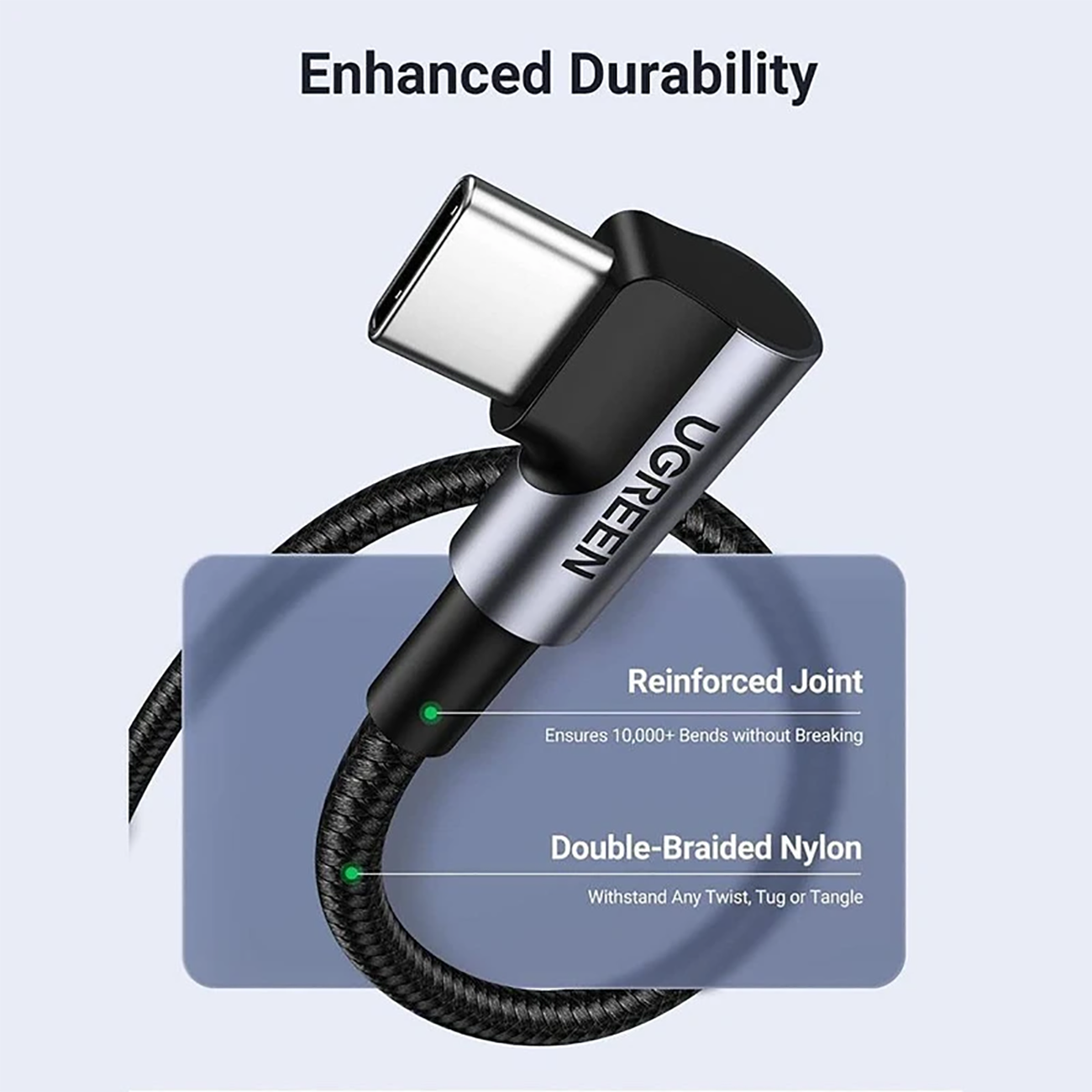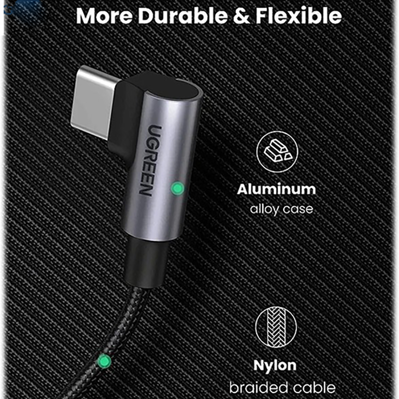 UGREEN US334 70643 USB-C 2.0 Male To Angled USB-C 2.0 Cable 1M