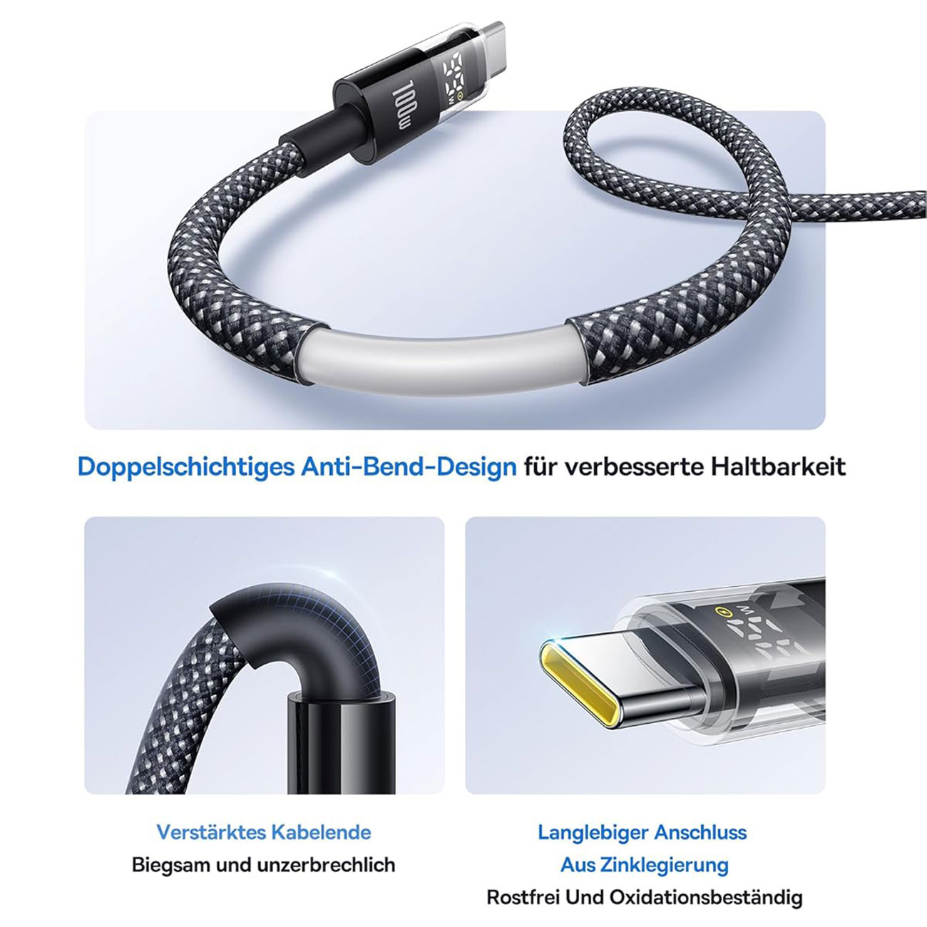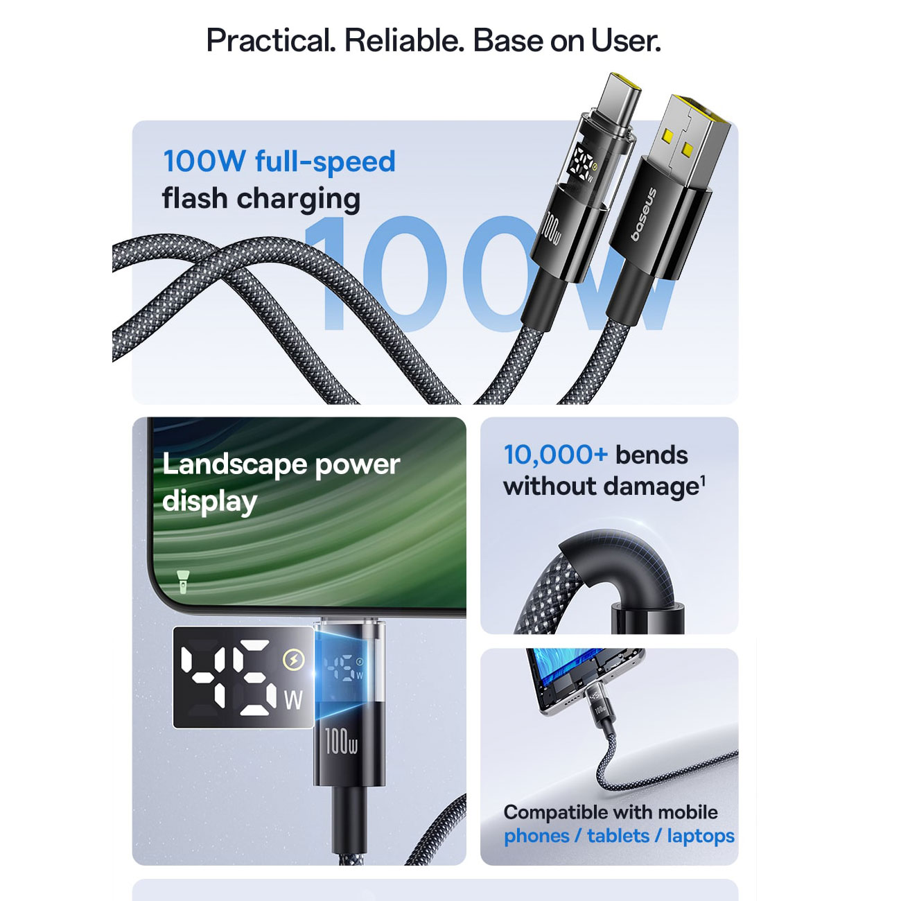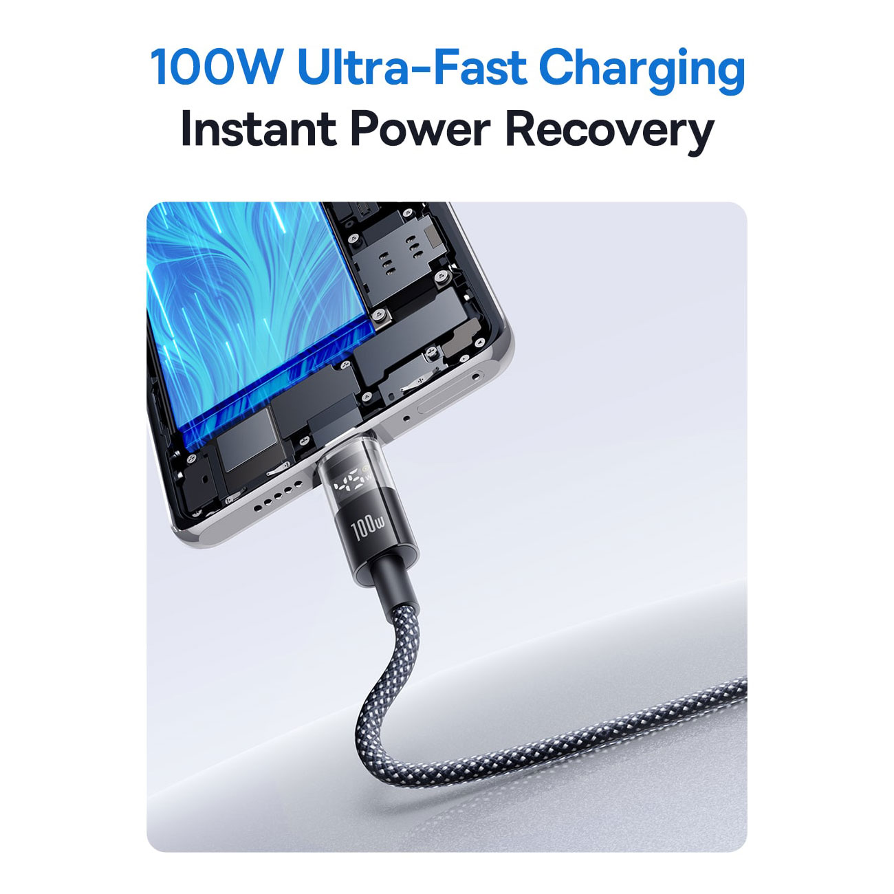 کابل فست شارژ یواسبی به تایپسی 100 وات یک متری بیسوس Display 2 p10382701121-00