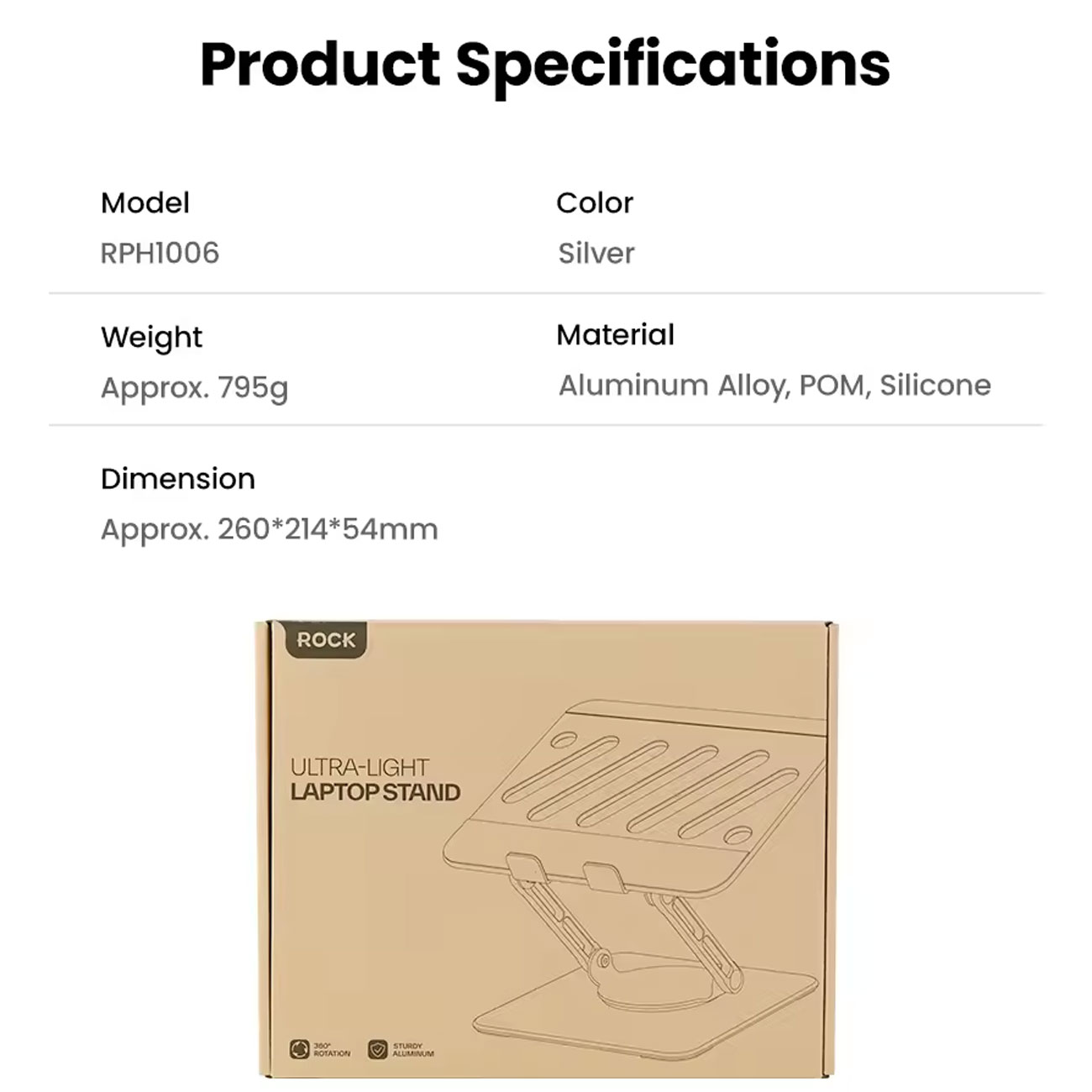 ROCK Ultra-Light Foldable & Adjustable Aluminum Laptop Stand RPH1006