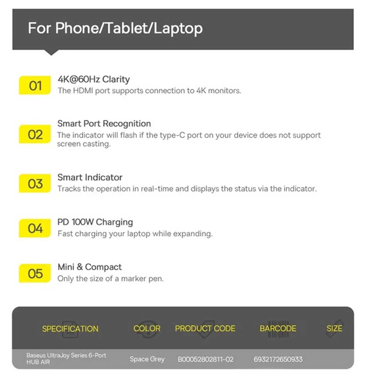 Baseus BS-OH166 UltraJoy Series 6 in 1 Type-C Port HUB