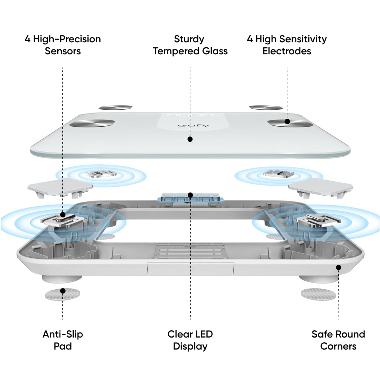 | ویژگیهای اضافی | خاموشی خودکار، شروع خودکار، نمایش واحدها (kg، lb، st)، قابلیت تنظیم اهداف شخصی، پیگیری پیشرفت در App |