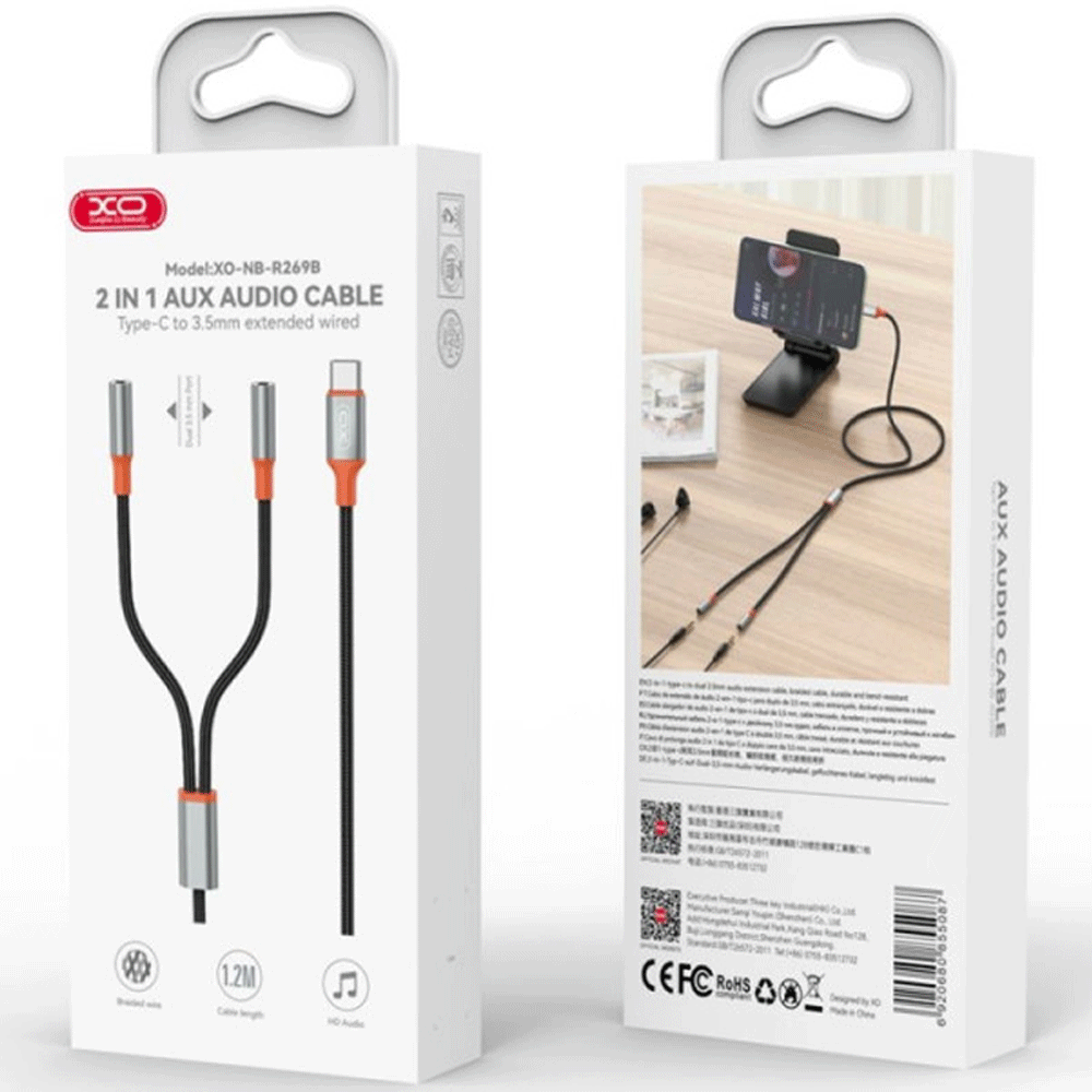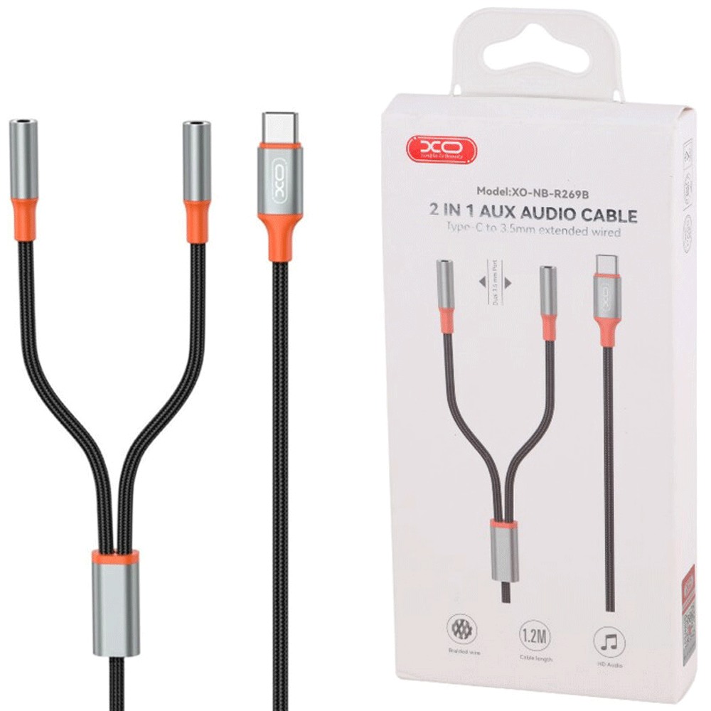 XO cable audio 2in1 NB-R269B 3.5mm USB-C - socket 3.5mm jack / socket 3.5mm jack 1,2 m black
