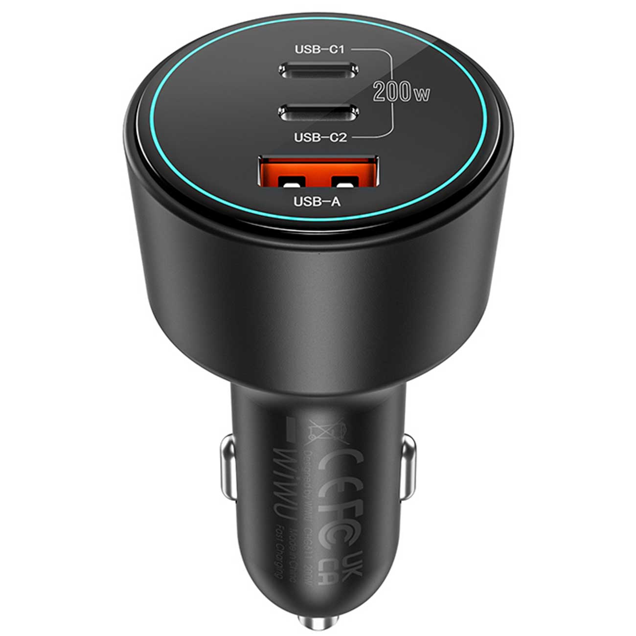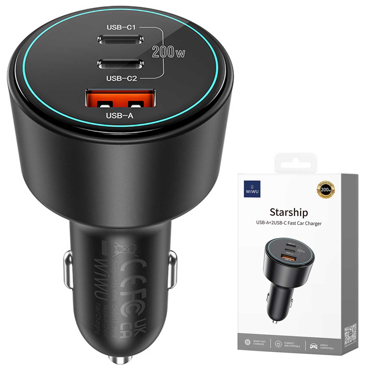 Wiwu Wi-QC026 Starship Series Fast Charging Dual Type-C + USB-A Port Car Charger 200W