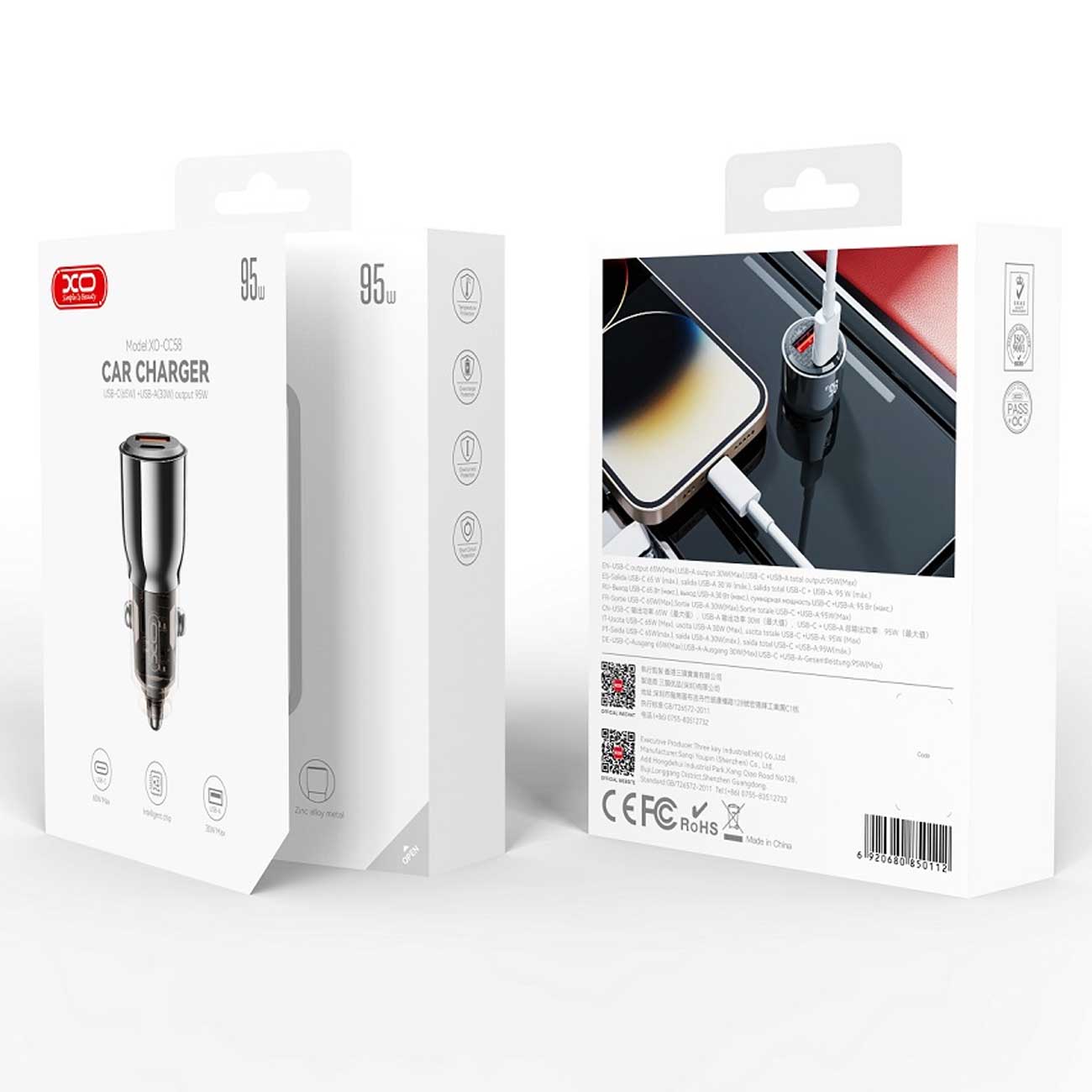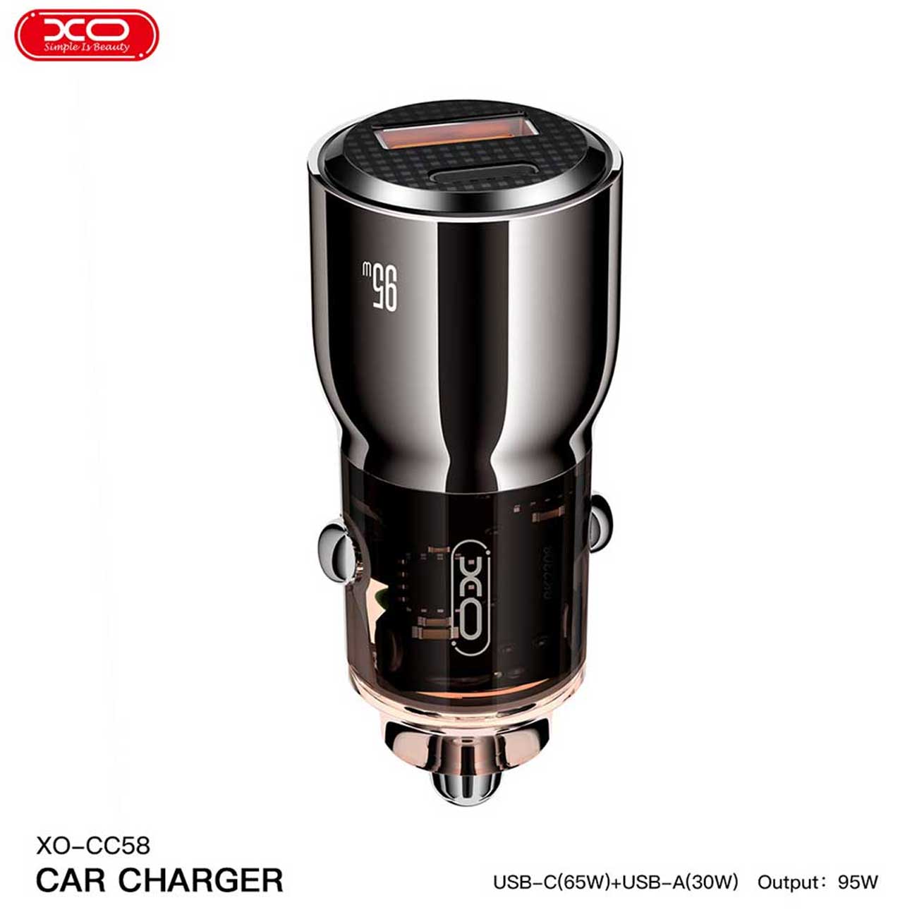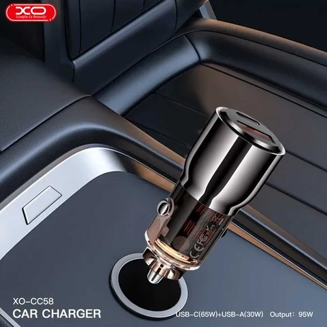 شارژر فندکی فست شارژ ماشین USB و تایپسی 95 وات ایکساو CC58