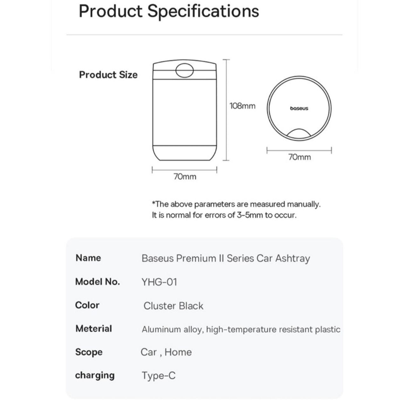 Baseus Premium 2 Series Car Ashtray YHG-01 C20464700111-00