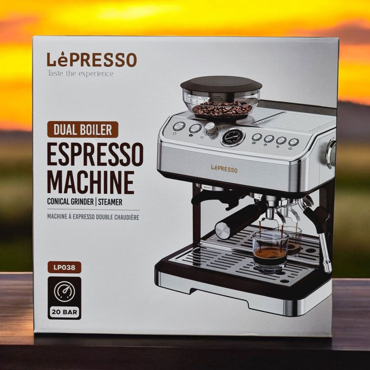 LEPRESSO DUAL BOILER ESPRESSO MACHINE CONICAL GRINDER AND STEAMER LPCFFM0038