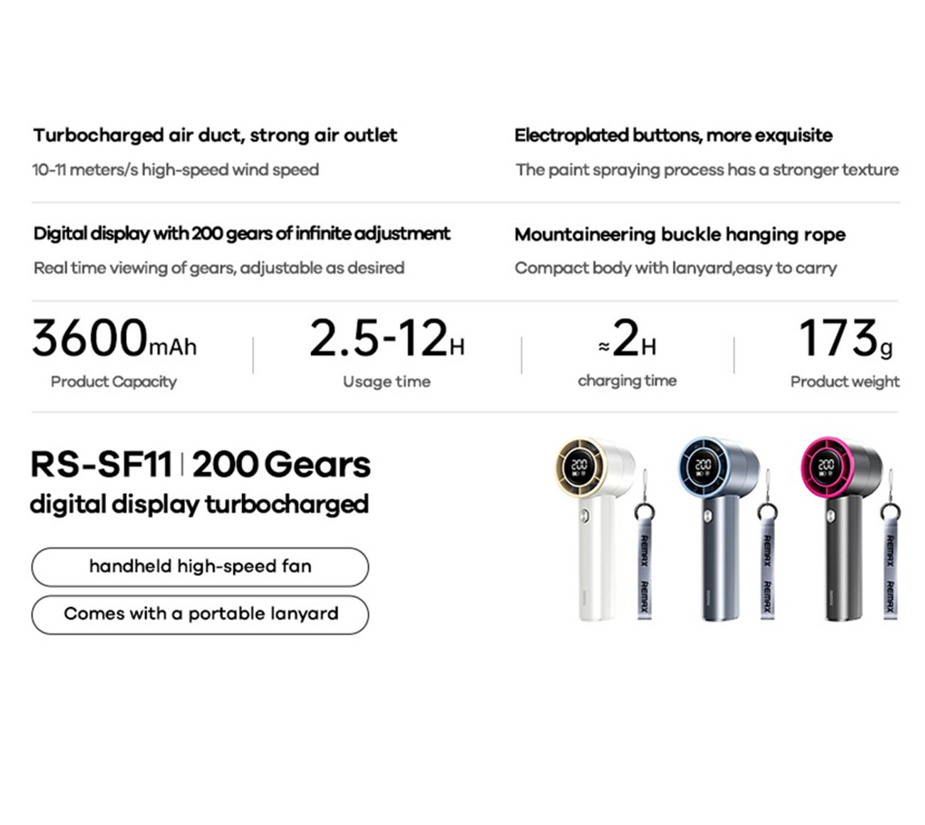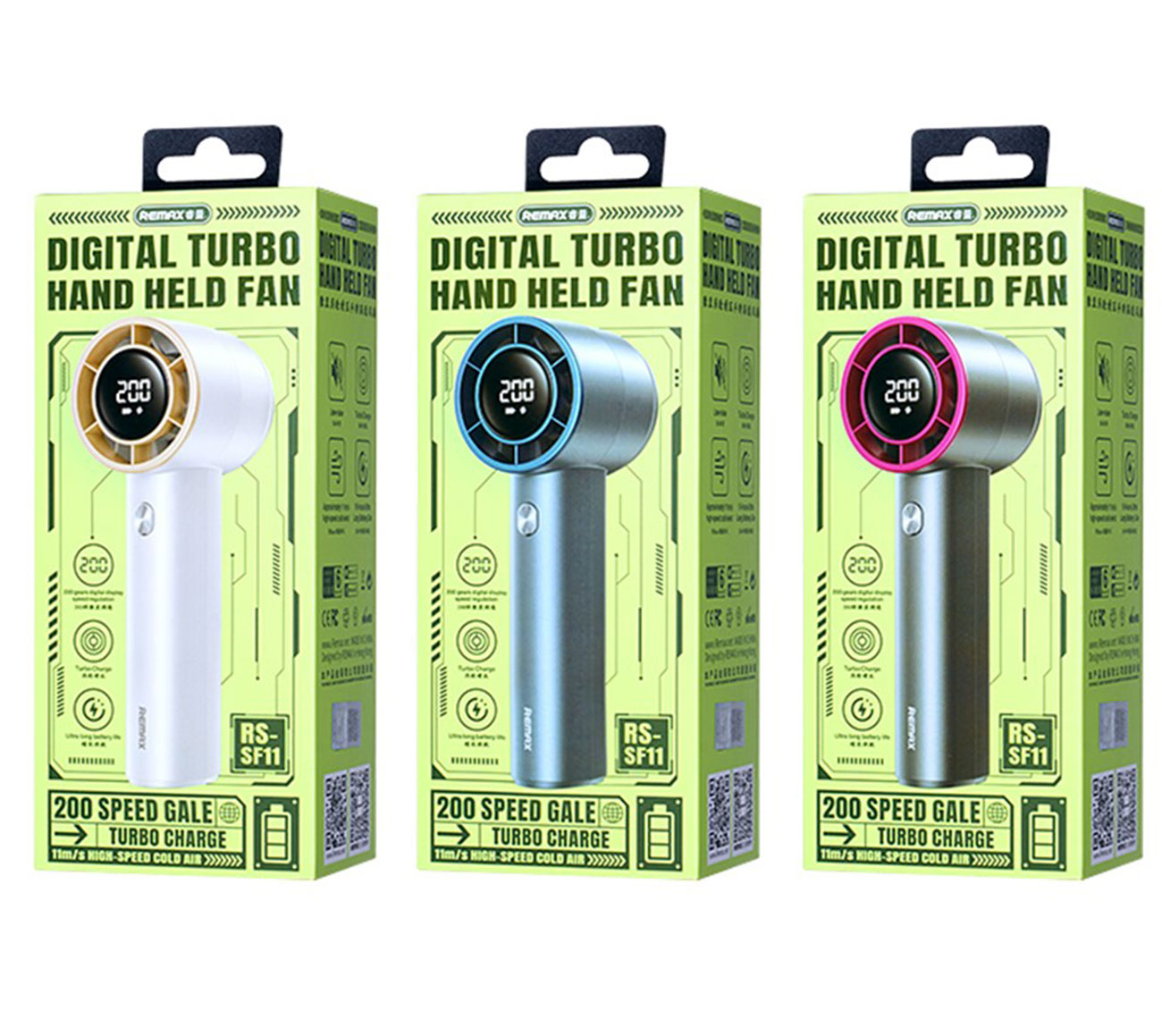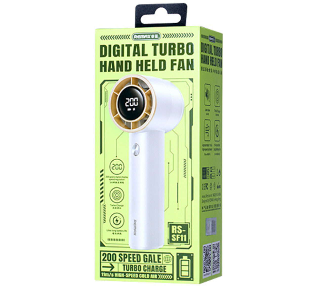 REMAX RS-SF11 Digital Display Handheld High-Speed Fan 3600mAh Battery Powered Turbo Cooling Fan