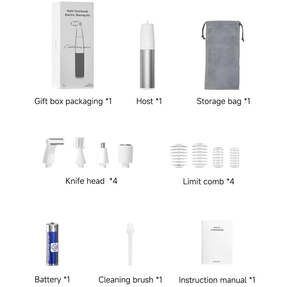 | لوازم همراه | دستگاه اصلی، 4 تیغه، 4 شانه محدود کننده طول، باتری AA، برس تمیزکننده، کیف نگهداری، دفترچه راهنما، جعبه هدیه |