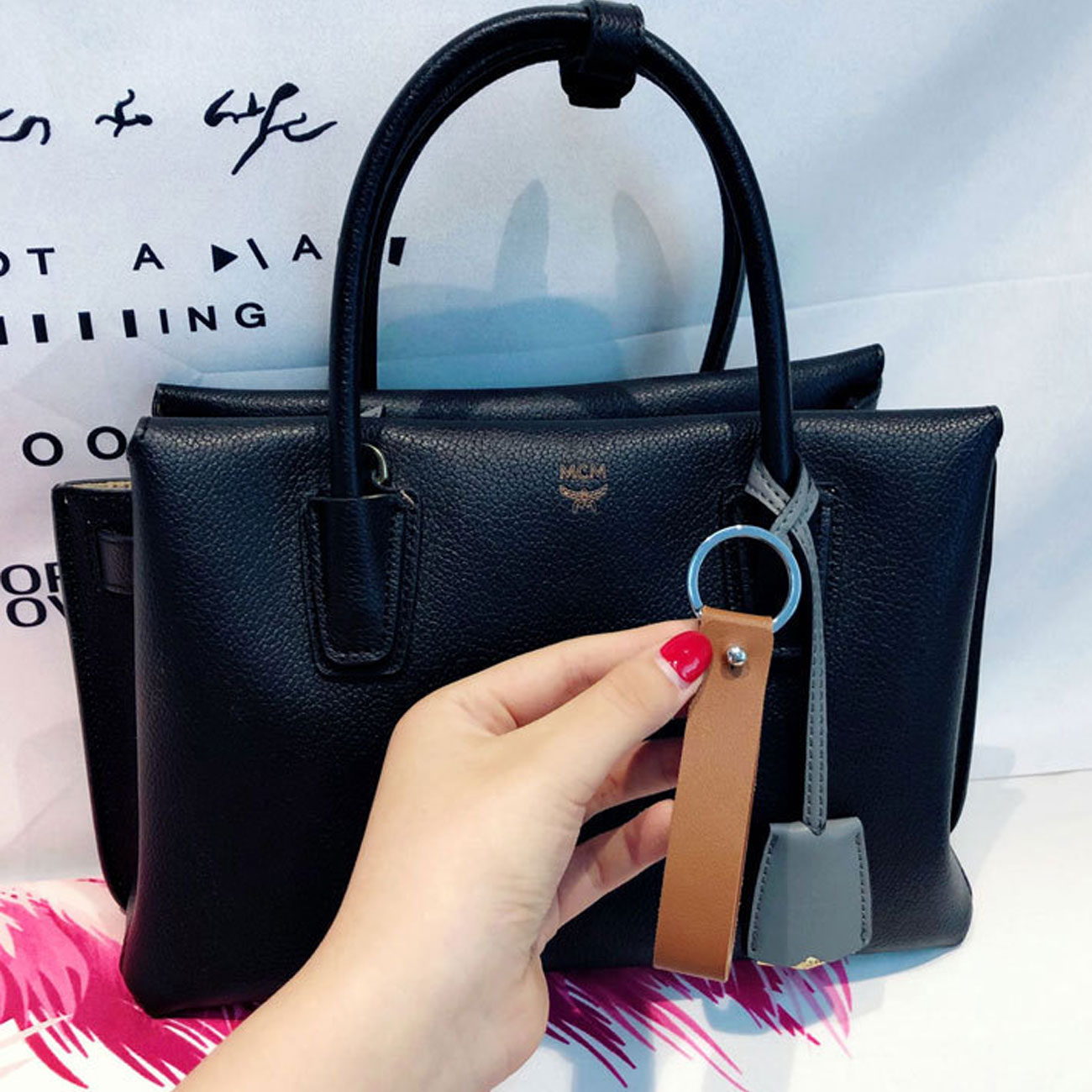 جاکلیدی و آویز کیف ساده طرح چرم بای مائو