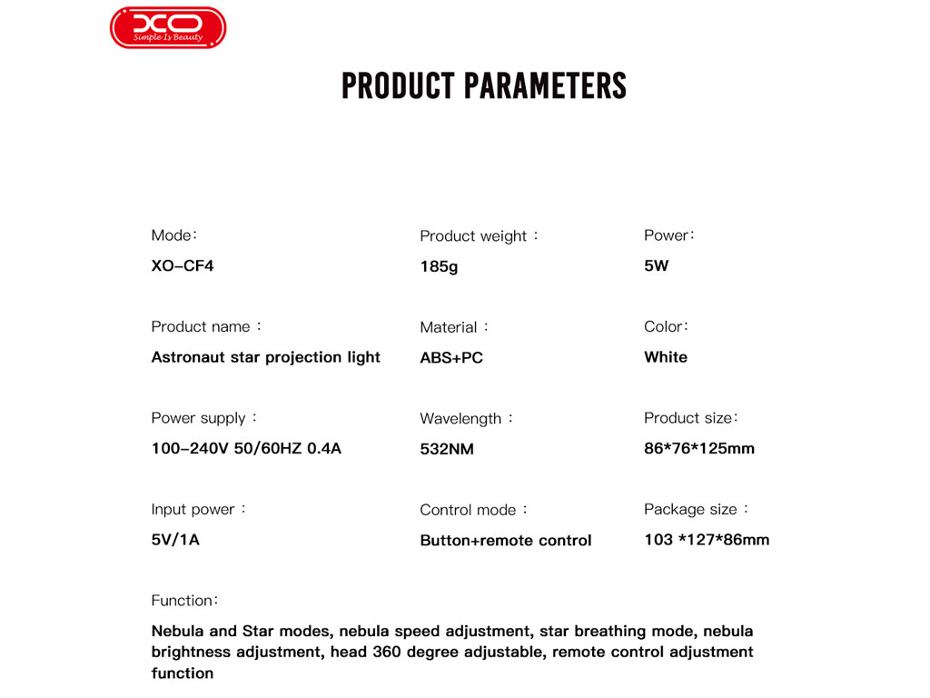 پروژکتور آسمان و ستاره طرح فضانورد ایکس او XO CF4 Astronaut star Projection