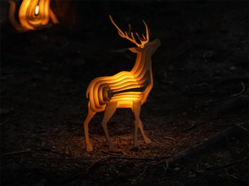 چراغ چوبی رومیزی فانتزی شارژی طرح گوزن Animal Wooden Night Light Interactive Assemble Toys