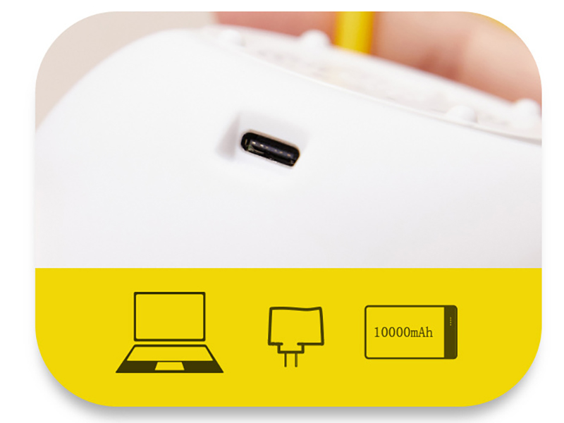 | قابل شارژ از طریق پورت USB لپ تاپ، آداپتور یا پاوربانک | |