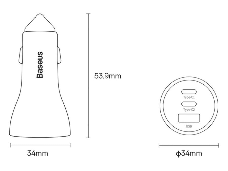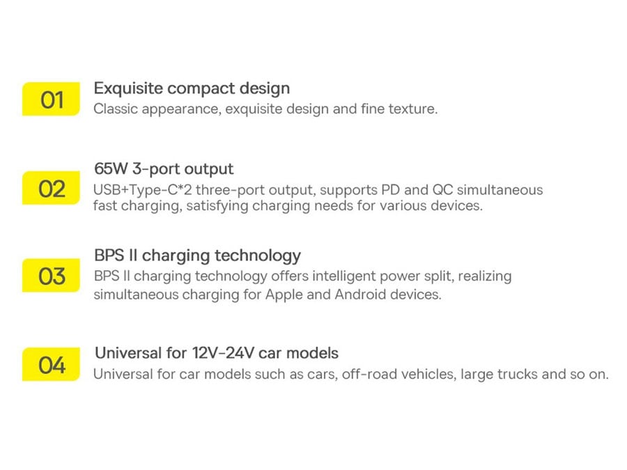 شارژر فندکی فست شارژ ماشین 65 وات بیسوس CGJP010003