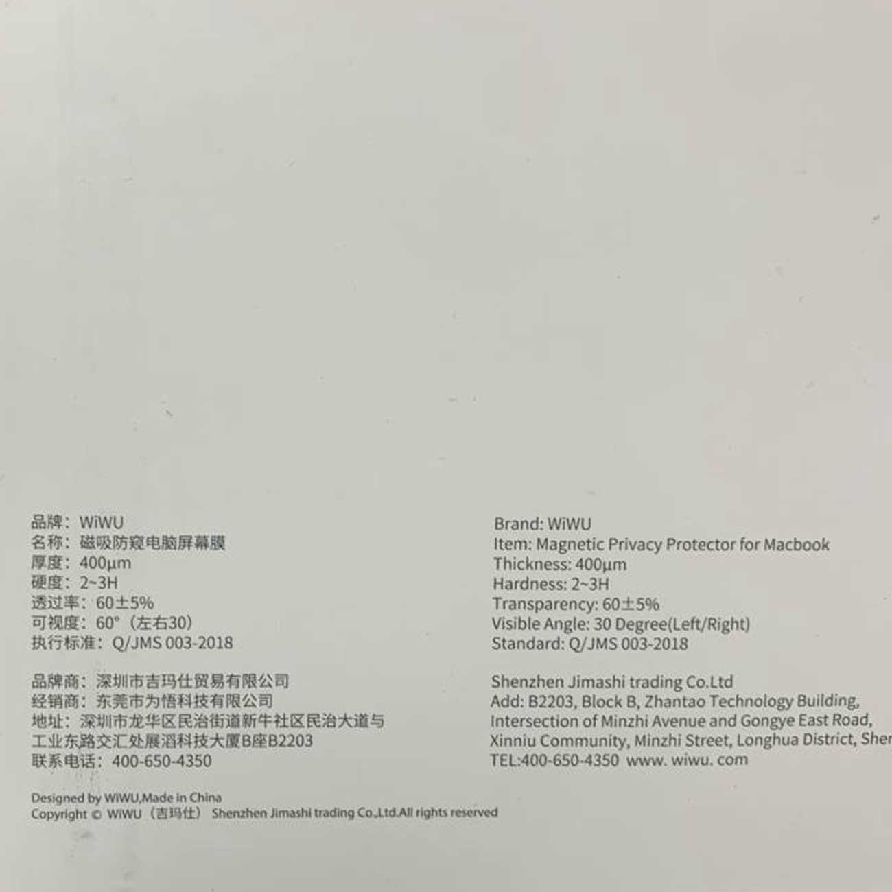 | مشخصات محافظ صفحه نمایش پرایویسی مک بوک 16 اینچ | |