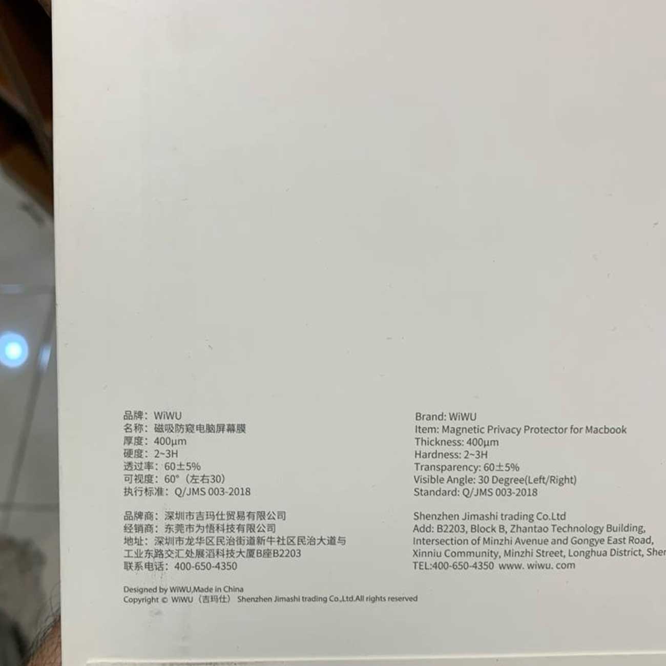 WiWU iprivacy magnetic screen film Mac pro 15.4 (A1990/A1707)