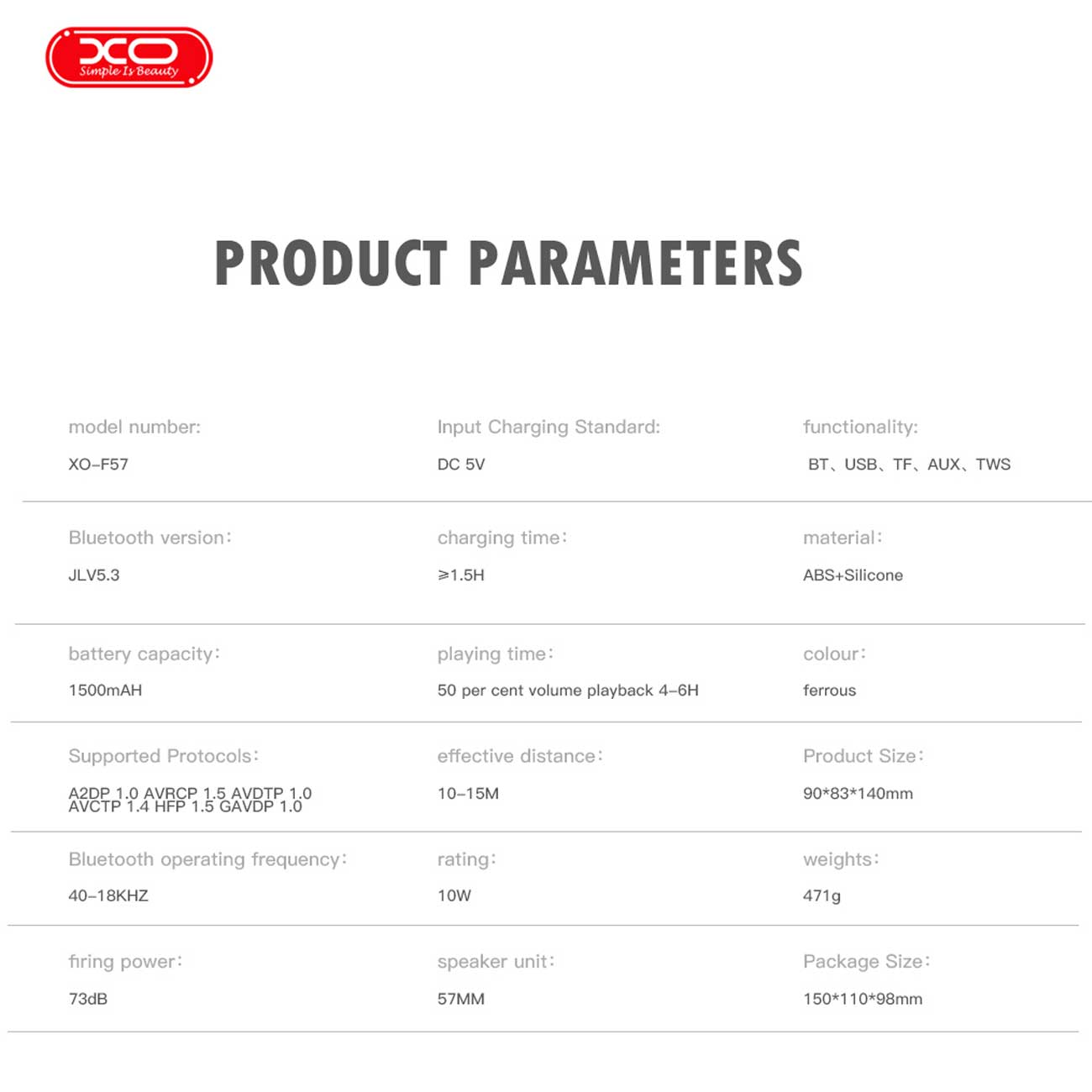 اسپیکر بلوتوثی قابل حمل ایکس او F57