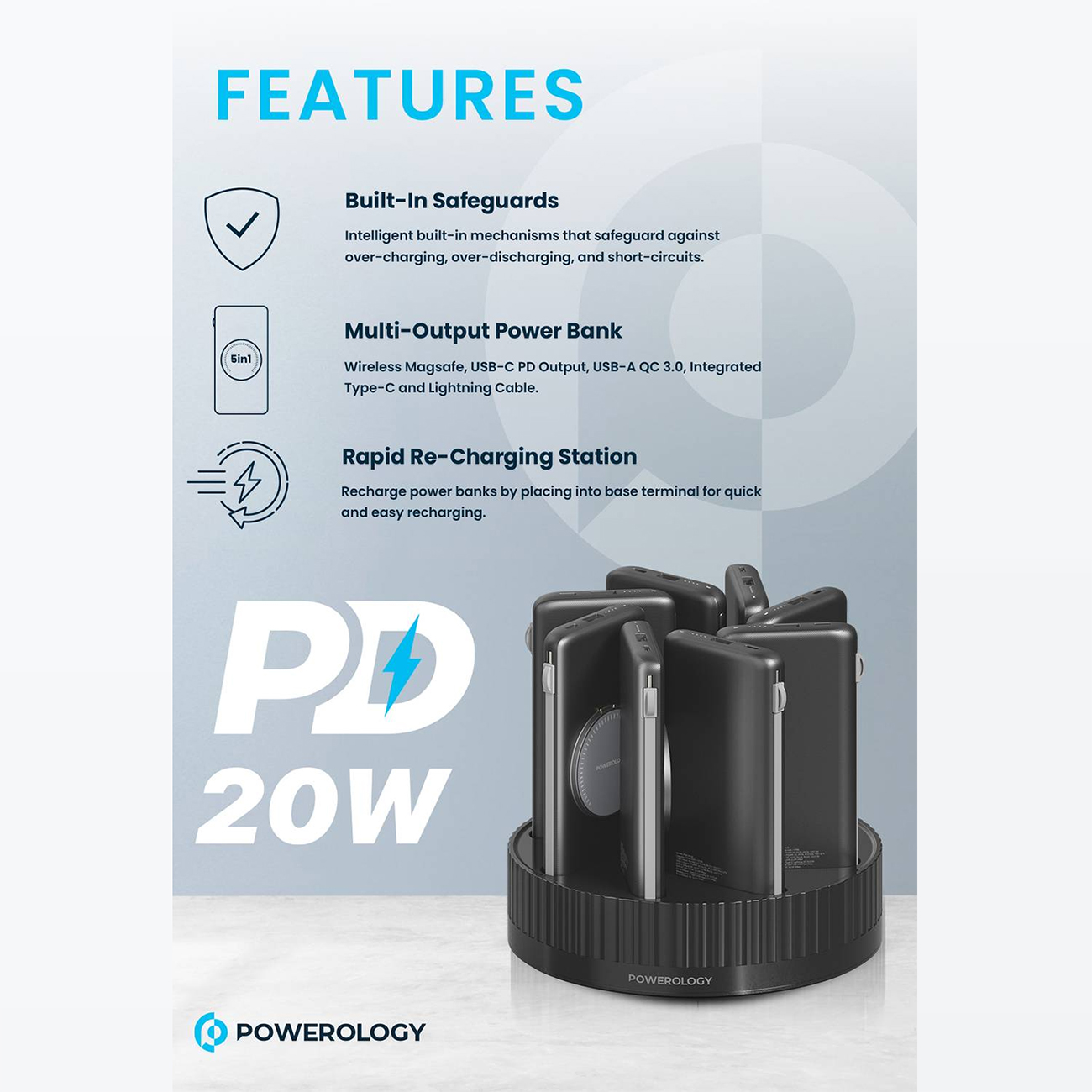 Powerology 10000mAh Power Bank Terminal PPBCHA2681BK