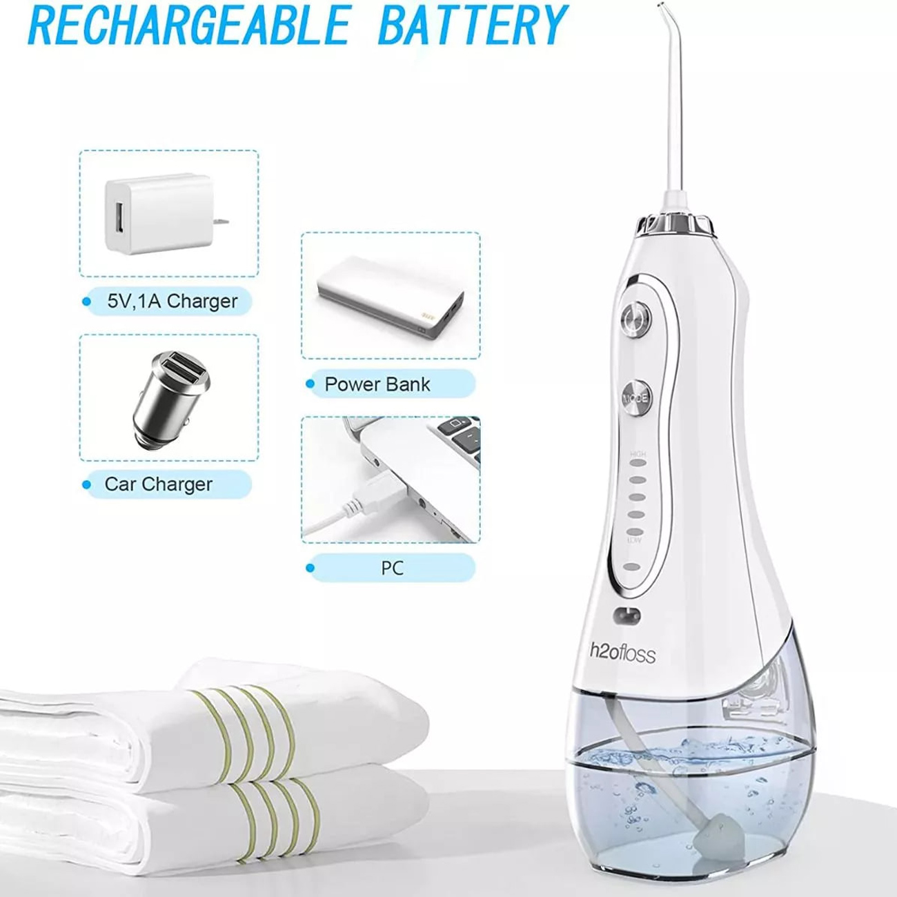 H2Ofloss Portable Oral Irrigator Flosser 5 Cleaning Modes & 6 Jet Tips, Ipx7 Waterproof 300Ml