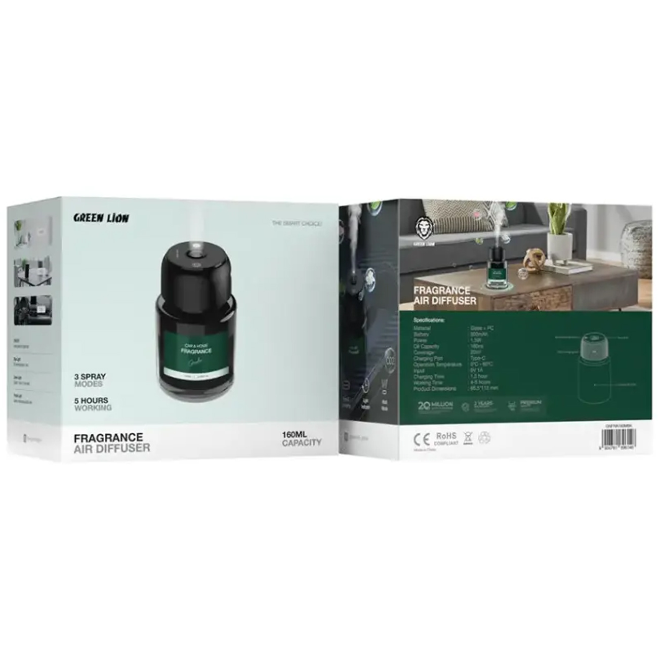 Green Lion GNFRA160MBK Fragrance Air Diffuser 160mL