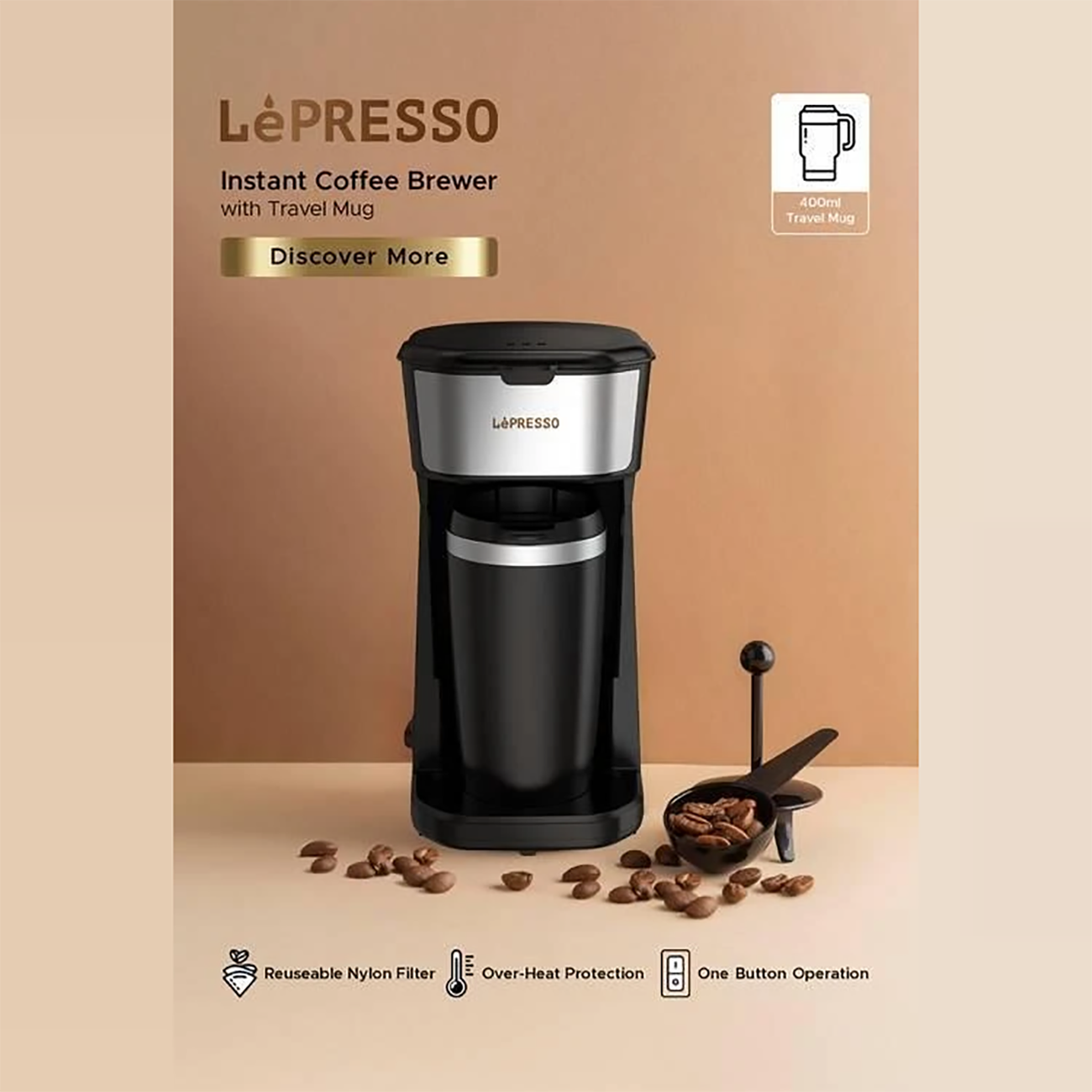 قهوه ساز لپرسو LEPRESSO اصل مدل LPCMTMBK لیوانی 400 میلی لیتر