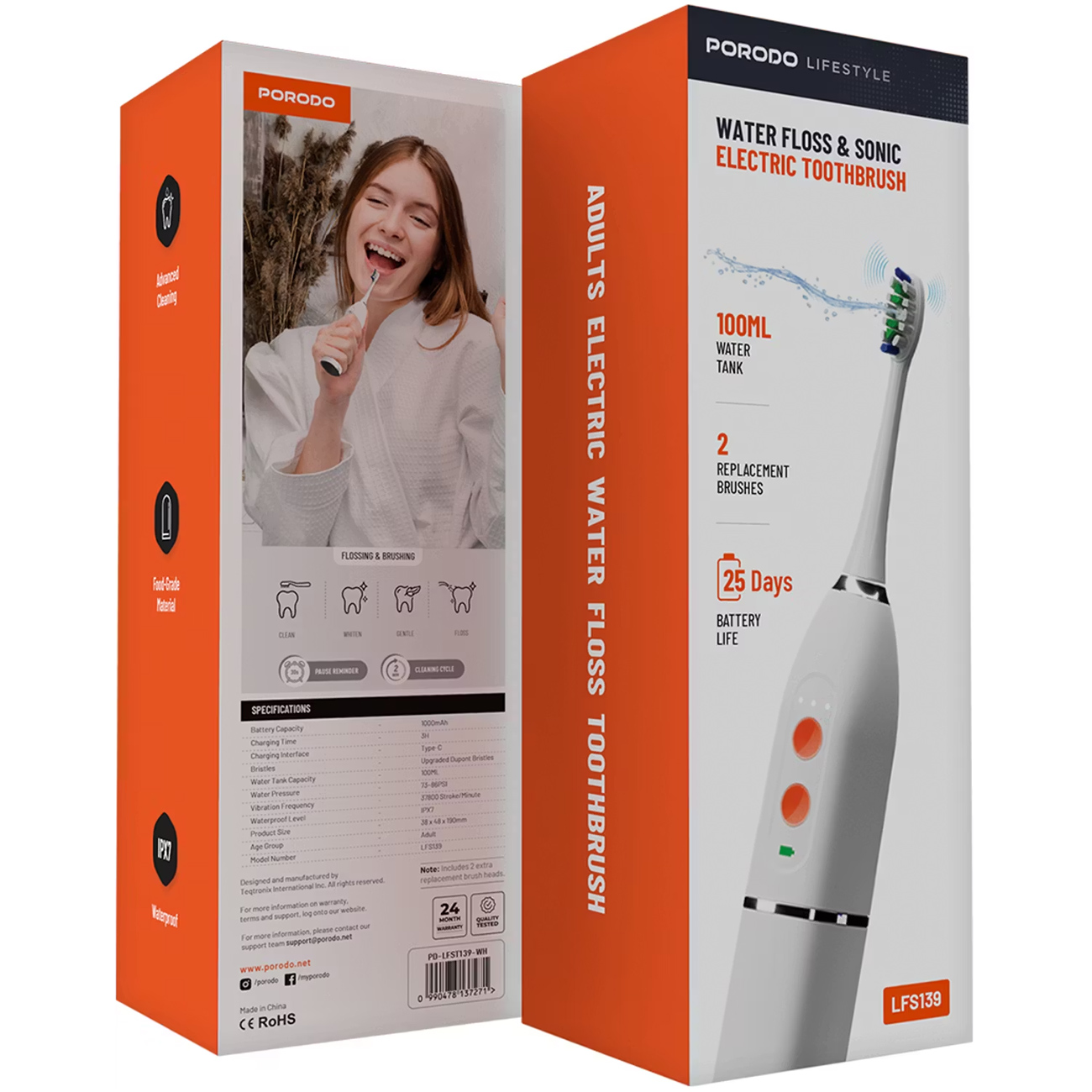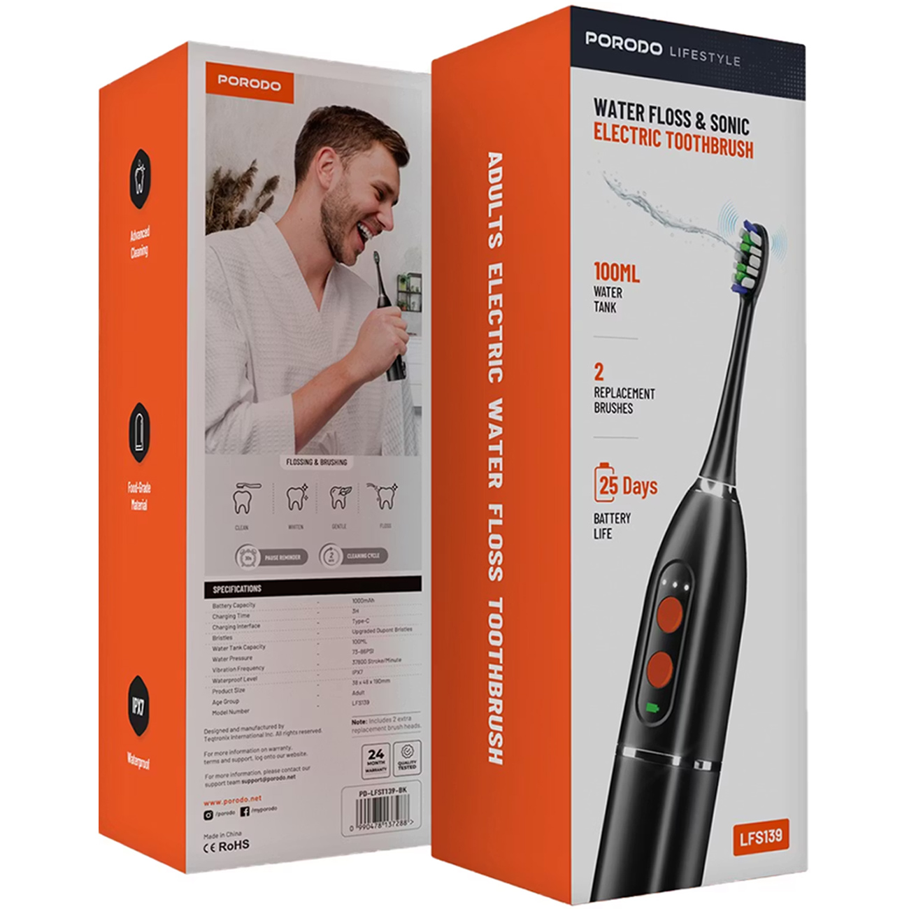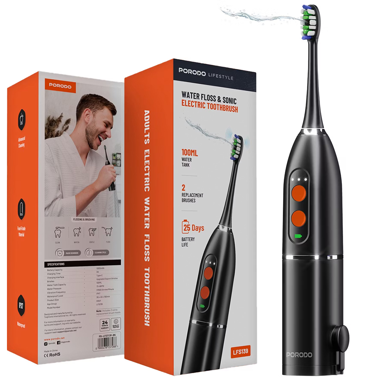 Porodo LFS13 Water Floss & Sonic Electric Toothbrush PD- LFST139-BK / PD-LFST139-WH
