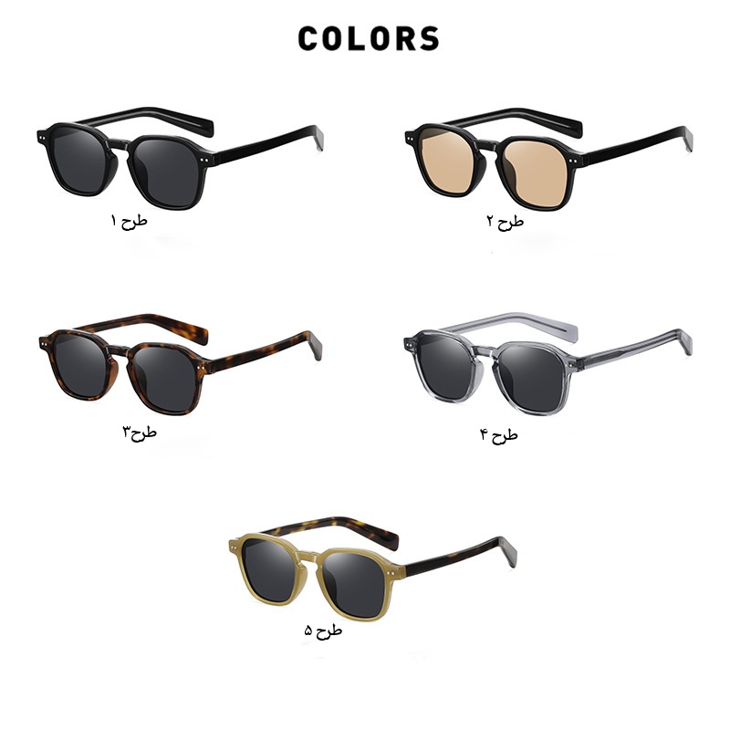 | رنگ | C1: مشکی براق/عدسی خاکستری – C2: مشکی براق/قهوهای روشن – C3: توفو پودینگ/خاکستری – C4: طوسی شفاف/خاکستری – C5: نارنجی ژلهای/خاکستری |