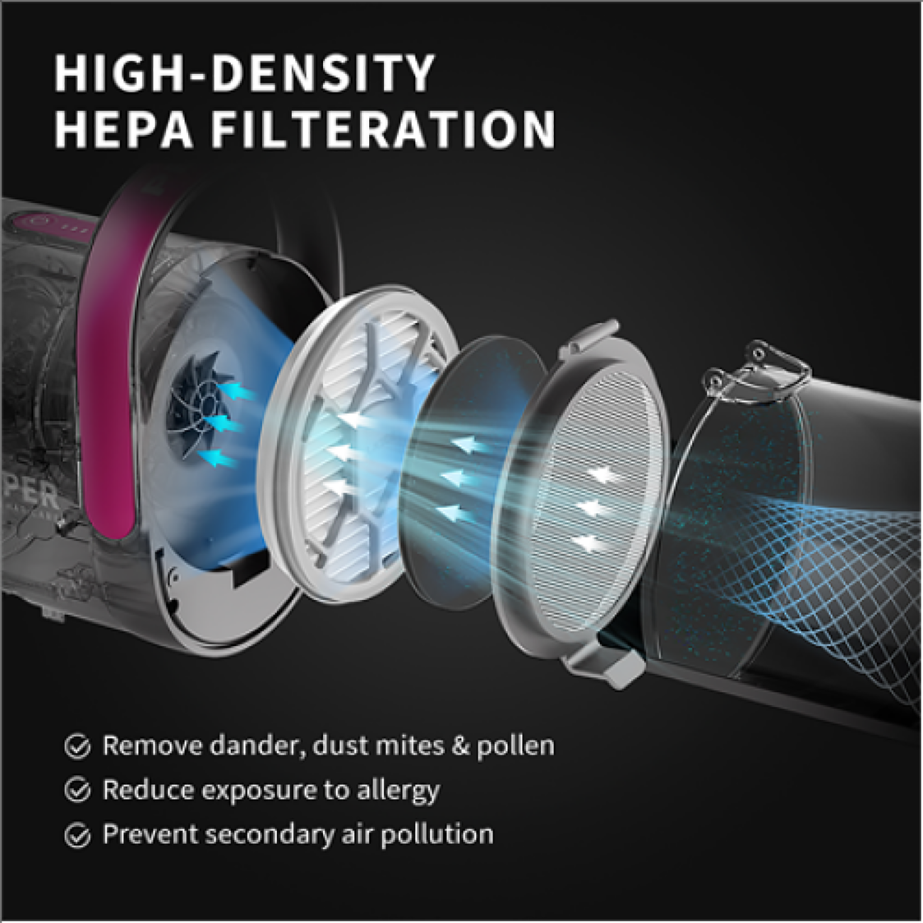 | سیستم فیلتراسیون HEPA از بین بردن 99.95% از ذرات آلرژیزا و گرد و غبار | |
