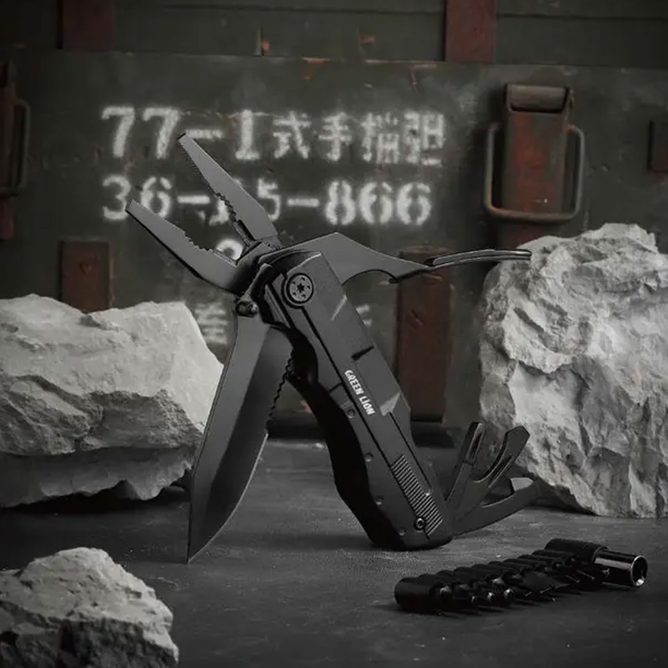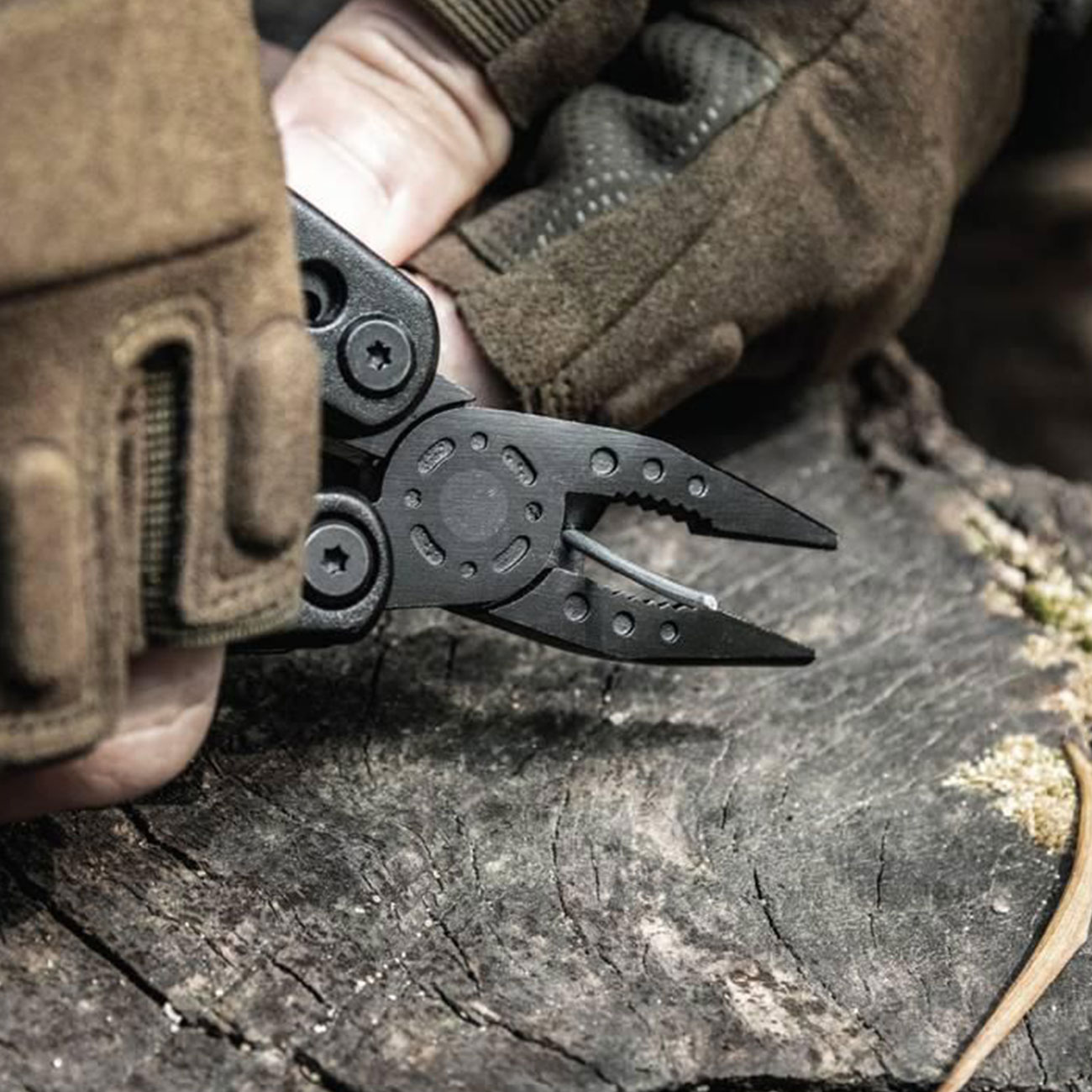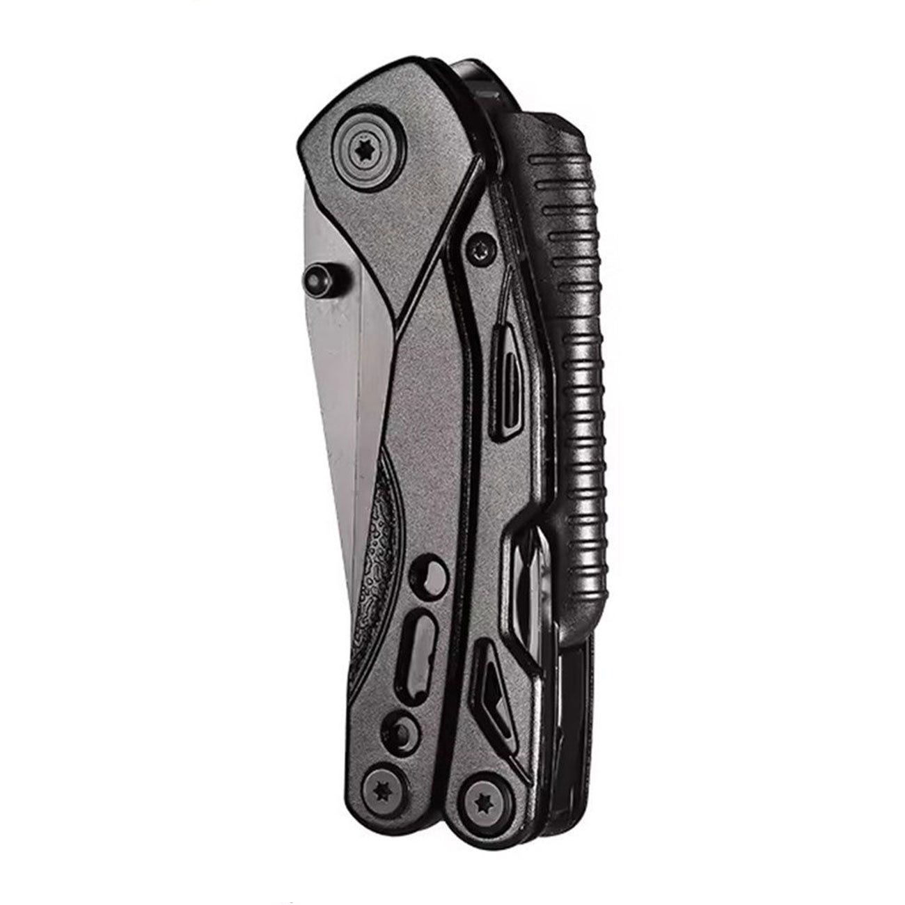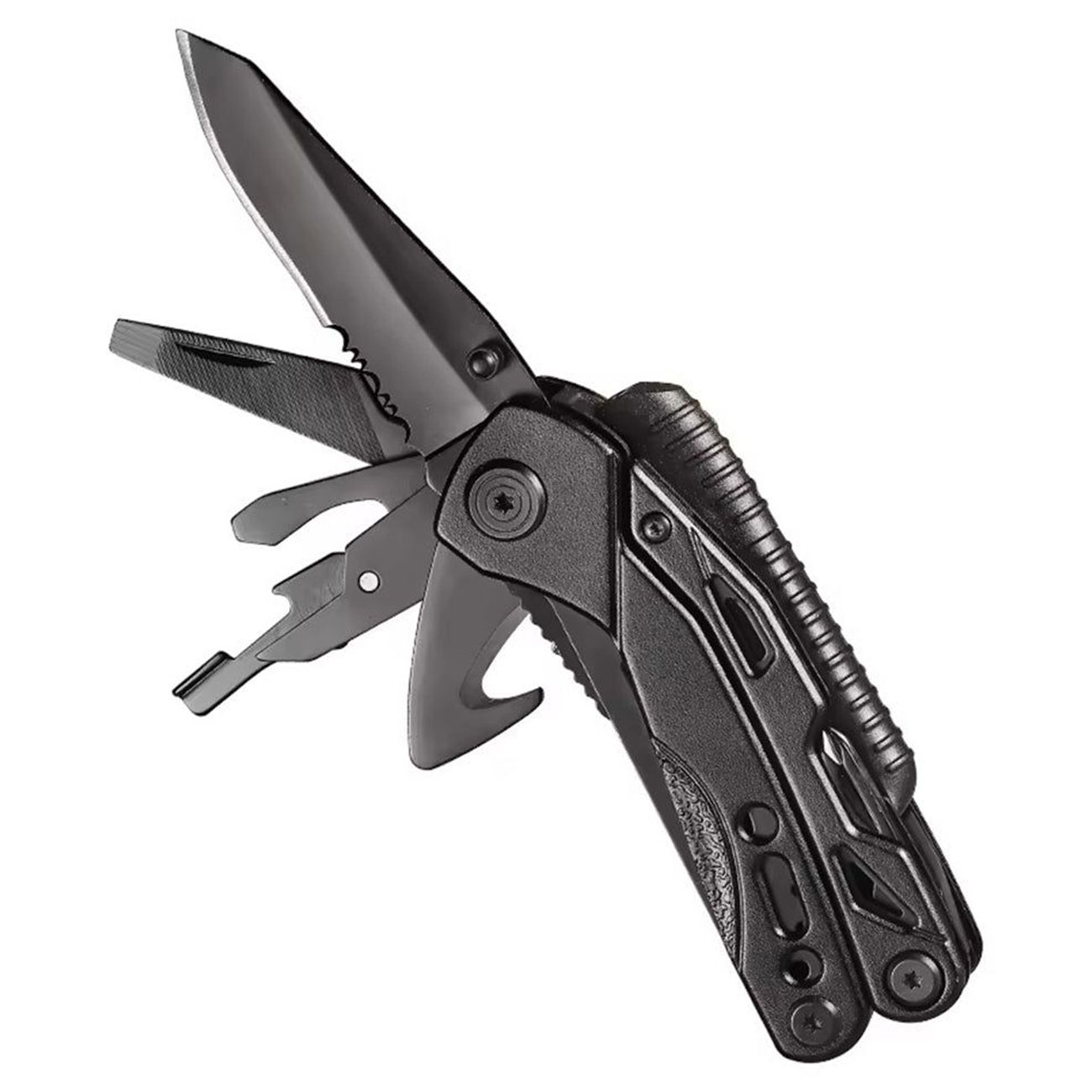 | قسمت های مختلف | انبر دم باریک، انبر دست، سیم چین، استارت کننده آتش، مجموعه 9 در 1، پیچ گوشتی تخت، برش طناب، چاقو، پیچ گوشتی چهارسو، اره، قیچی، درب باز کن بطری و سوهان ناخن |