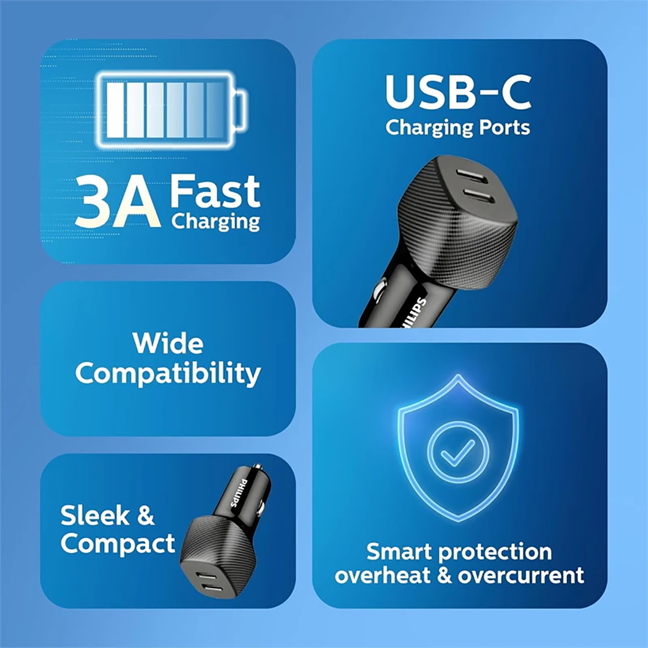 Philips DLP5522C Digital Display PD Car Charger 2Port 60w