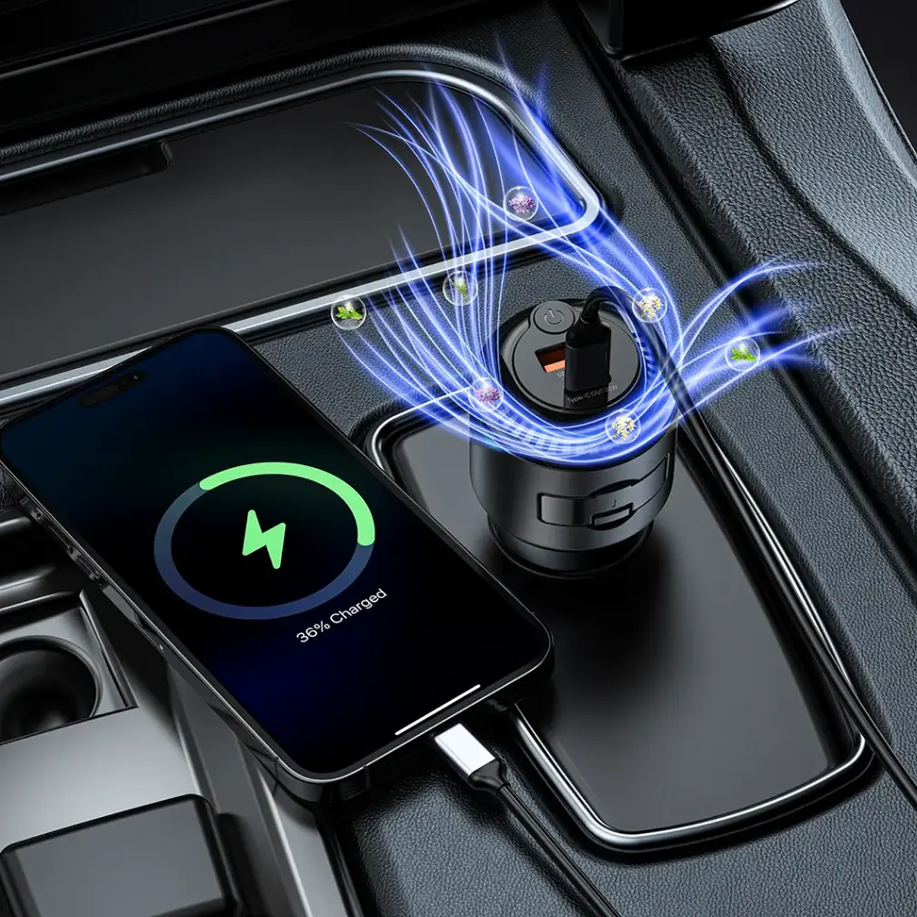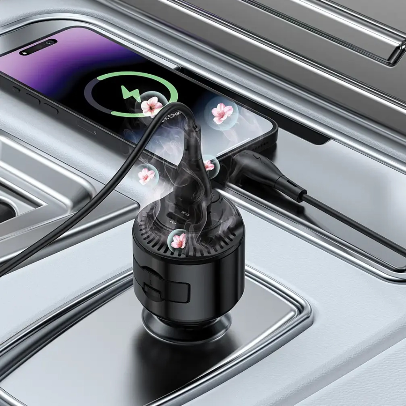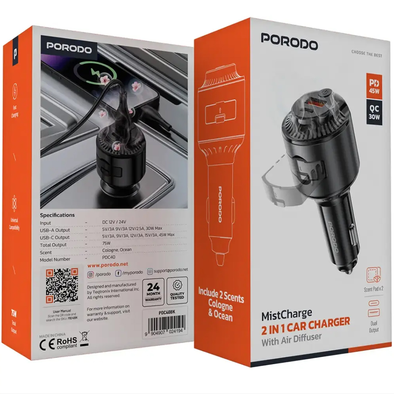 شارژر فندکی فست شارژ ماشین و خوشبو کننده هوا پورودو Porodo مدل PDC40BK