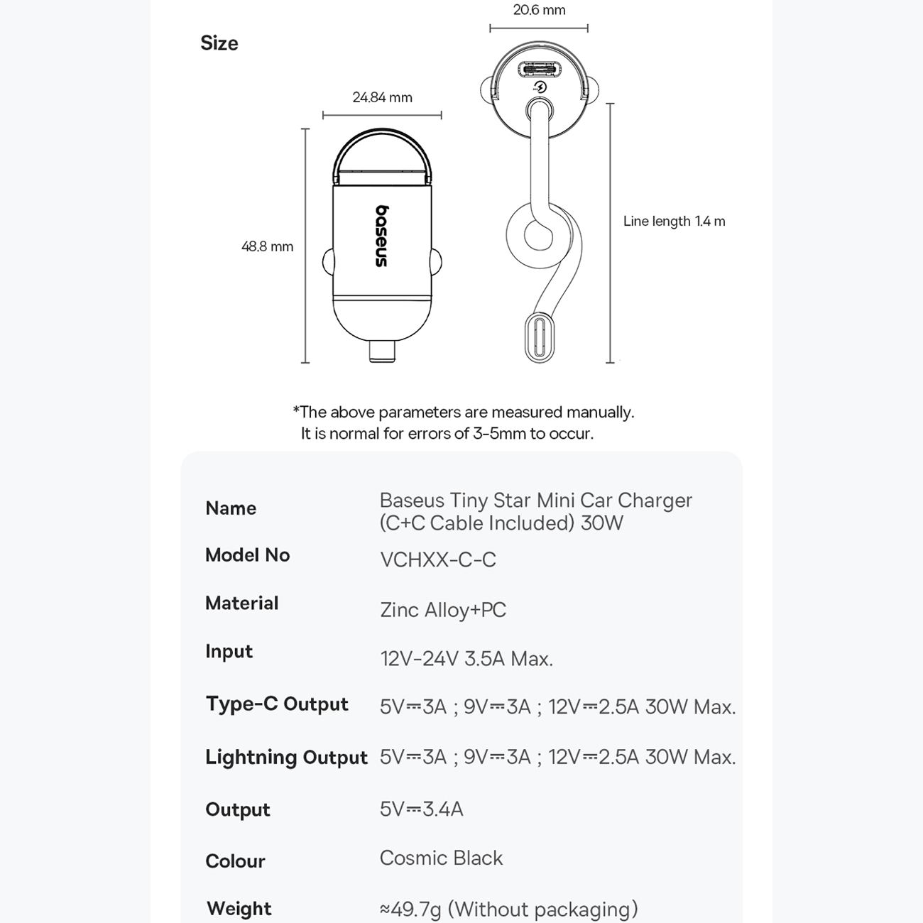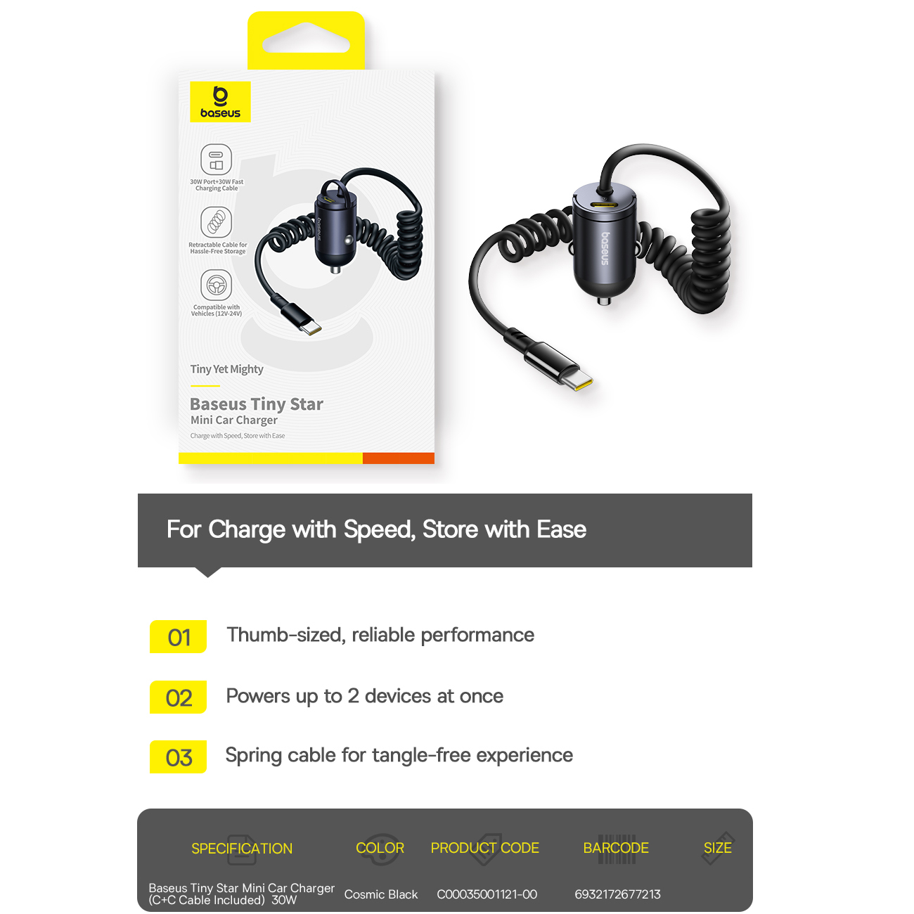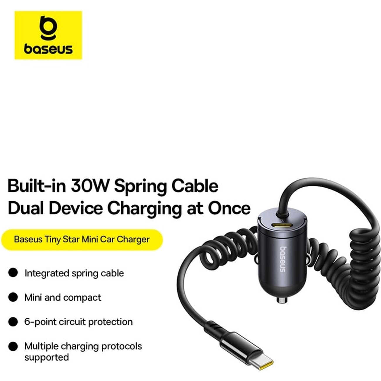 Baseus Tiny Star Mini Car Charger (C+C Cable Included) 30W VCHXX-C-C C00035001121-00