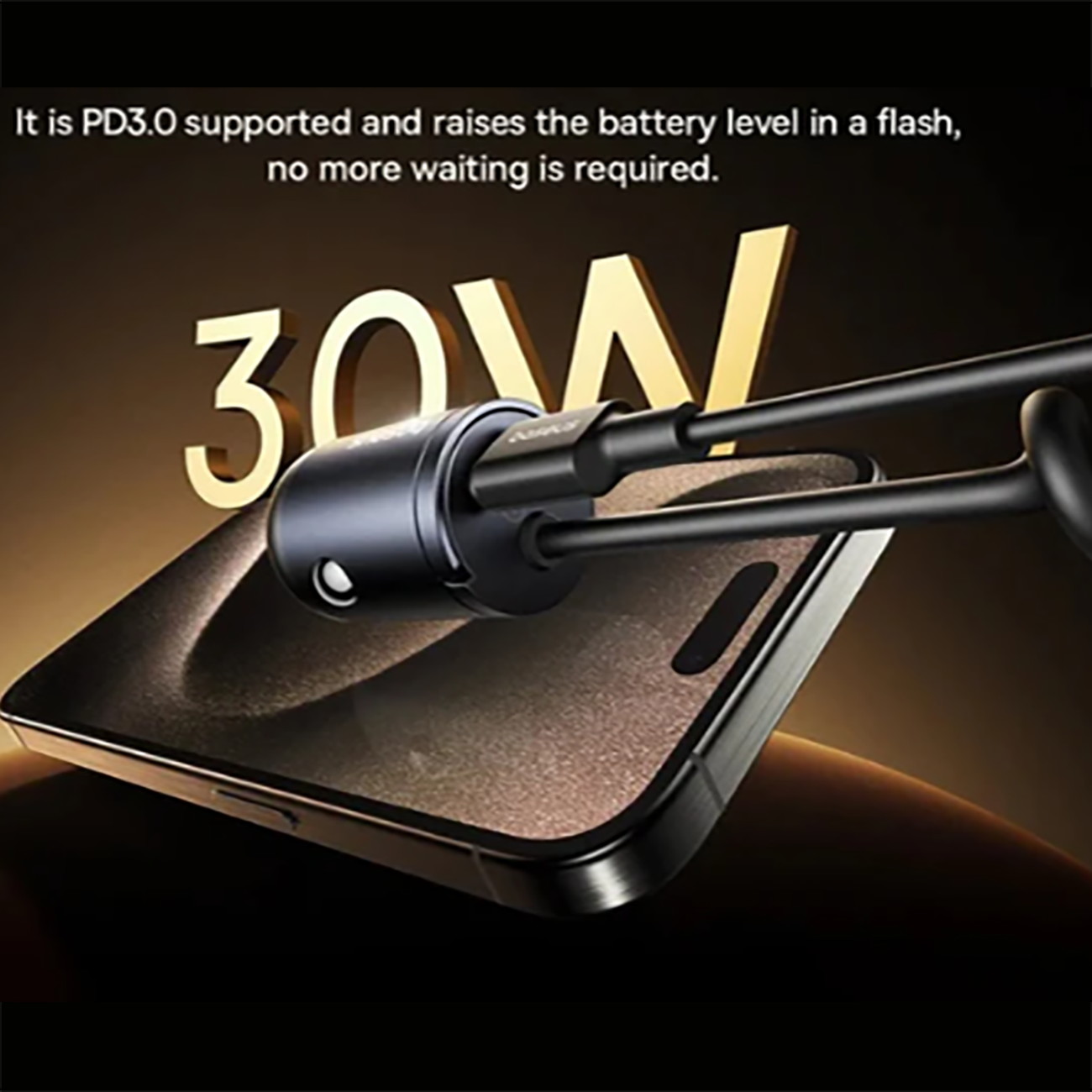 شارژر فندکی فست شارژ ماشین تایپ سی 30 وات بیسوسBaseus C00035001121-01 همراه با کابل متصل لایتنینگ